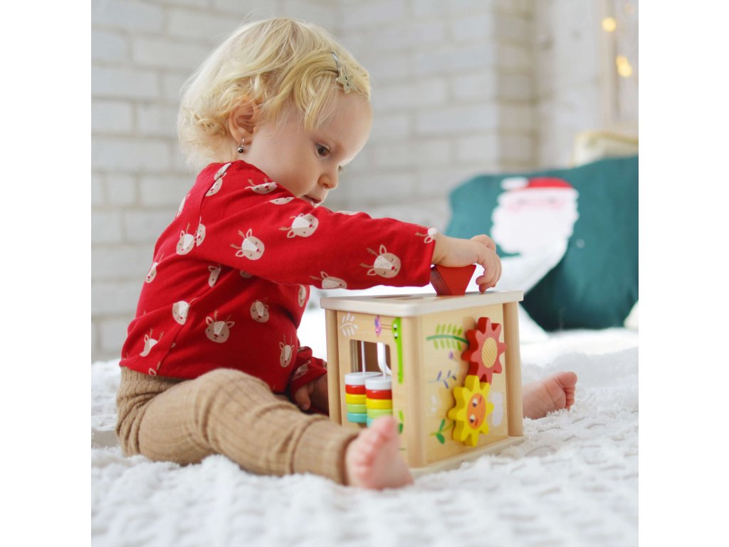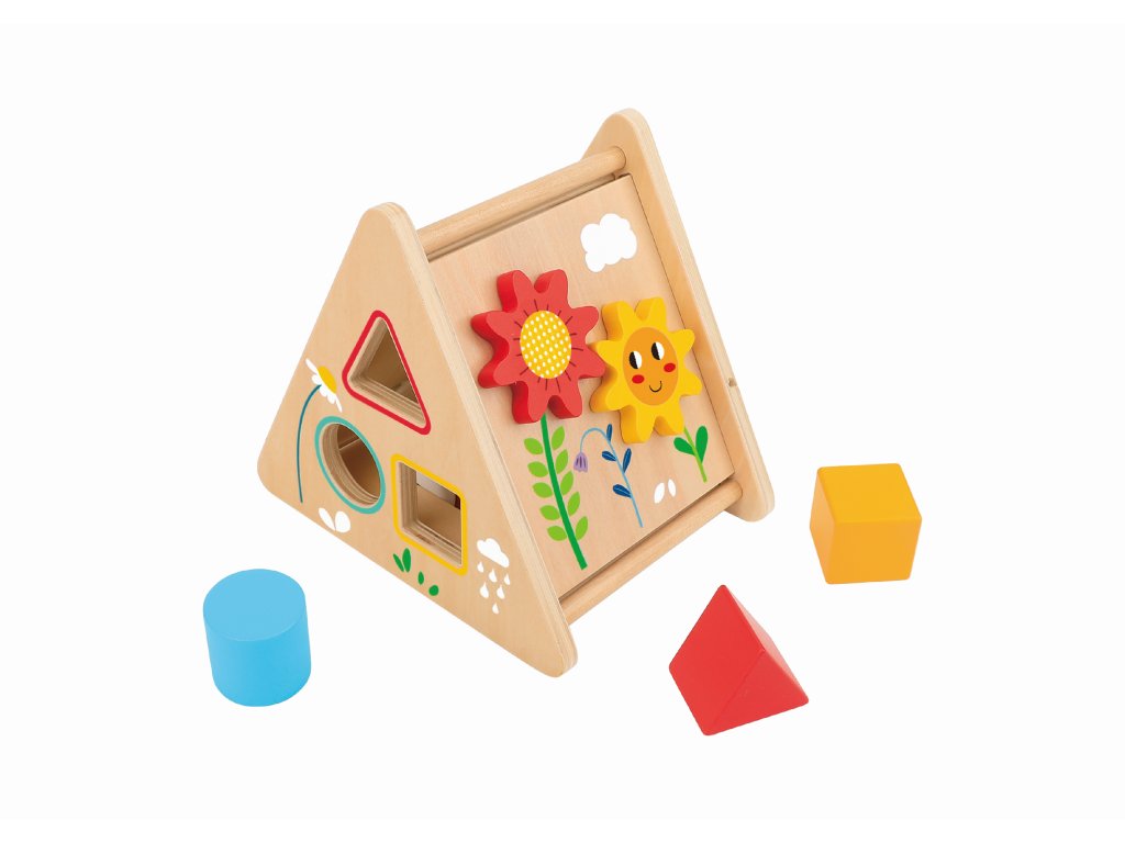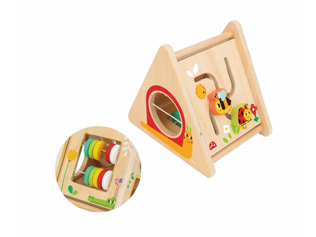 Aktivity trojuholník Zábavné učenie na päť spôsobov Drevený trojuholník s piatimi stranami prináša nekonečné množstvo aktivít pre vaše dieťatko. Zabaví sa s geometrickými tvarmi či kvietkami v skladačke.Celá hračka je v krásnych jasných farbách a obsahuje malé počítadlo Trojuholník rozvýja u detí kreativne myslenie a motorické schopnosti. Hračka je z kvalitných materiálov.Dodatočné parametre