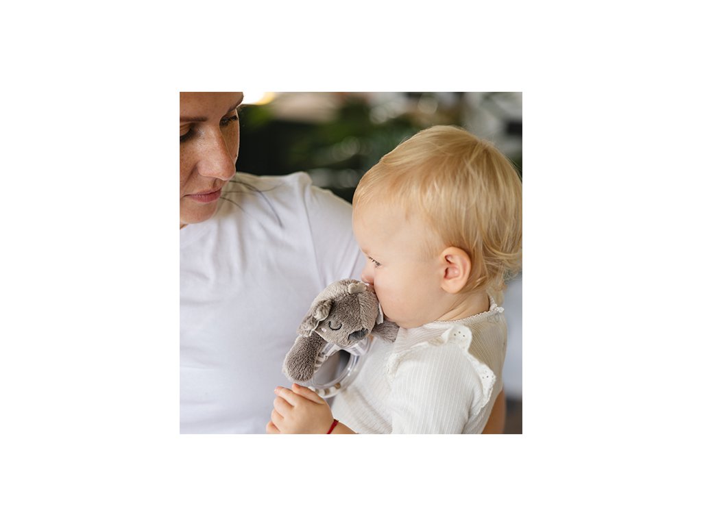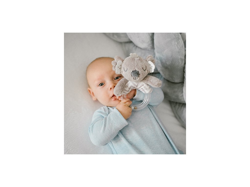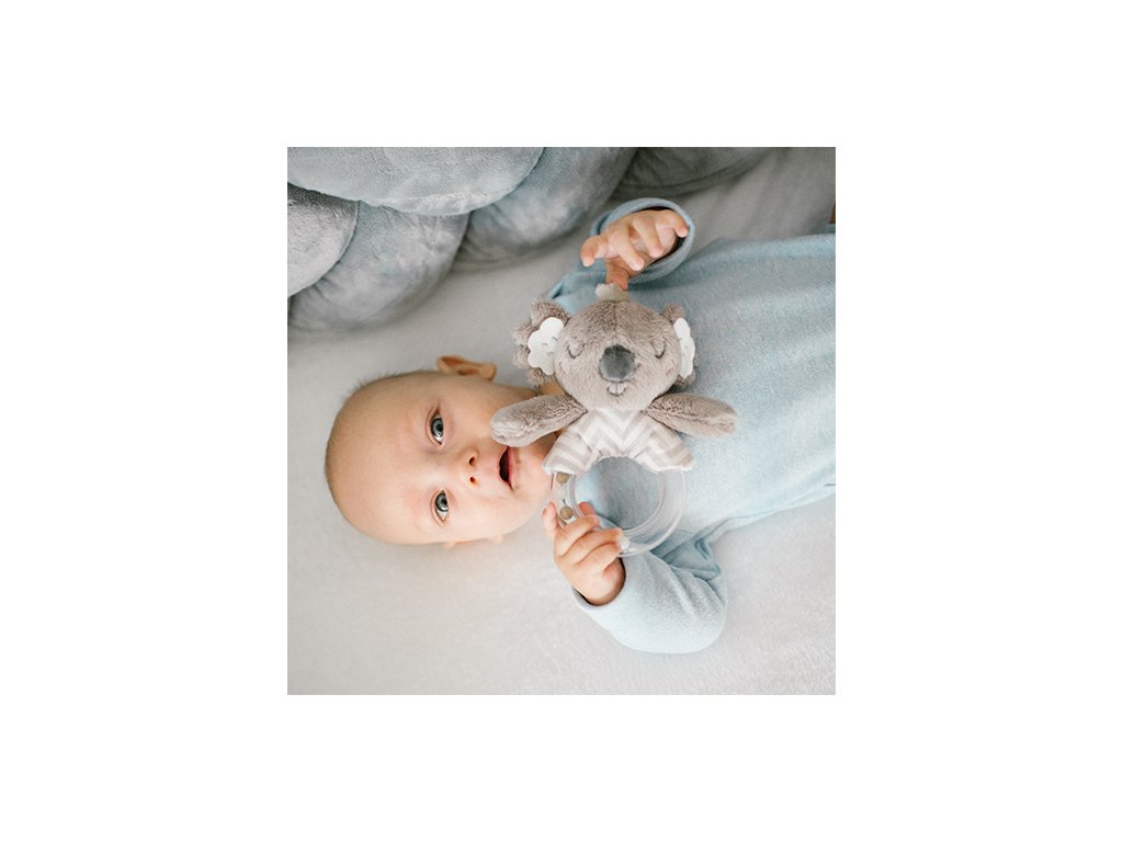 Naša hrkálka Koala Coco podporuje rozvoj zmyslov bábätka . Jej ergonomický tvar sa perfektne hodí pre malé rúčky. Veľké uši a dlhé rúčky jej pomáhajú zvládať obratnosť, zatiaľ čo farebné korálky sú pútavé. Zvuky, ktoré hrkálka vydáva, ovplyvňujú sluch bábätka a rozmanité textúry podporujú rozvoj hmatových zručností.