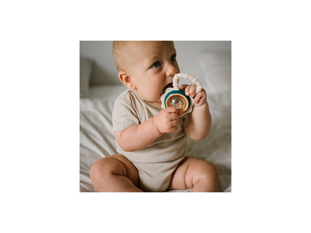 - HRYZÁTKO - Silikónové hryzátko príjemné na dotyk jemne trie ďasná dieťaťa a poskytuje úľavu v období prerezávania zúbkov.