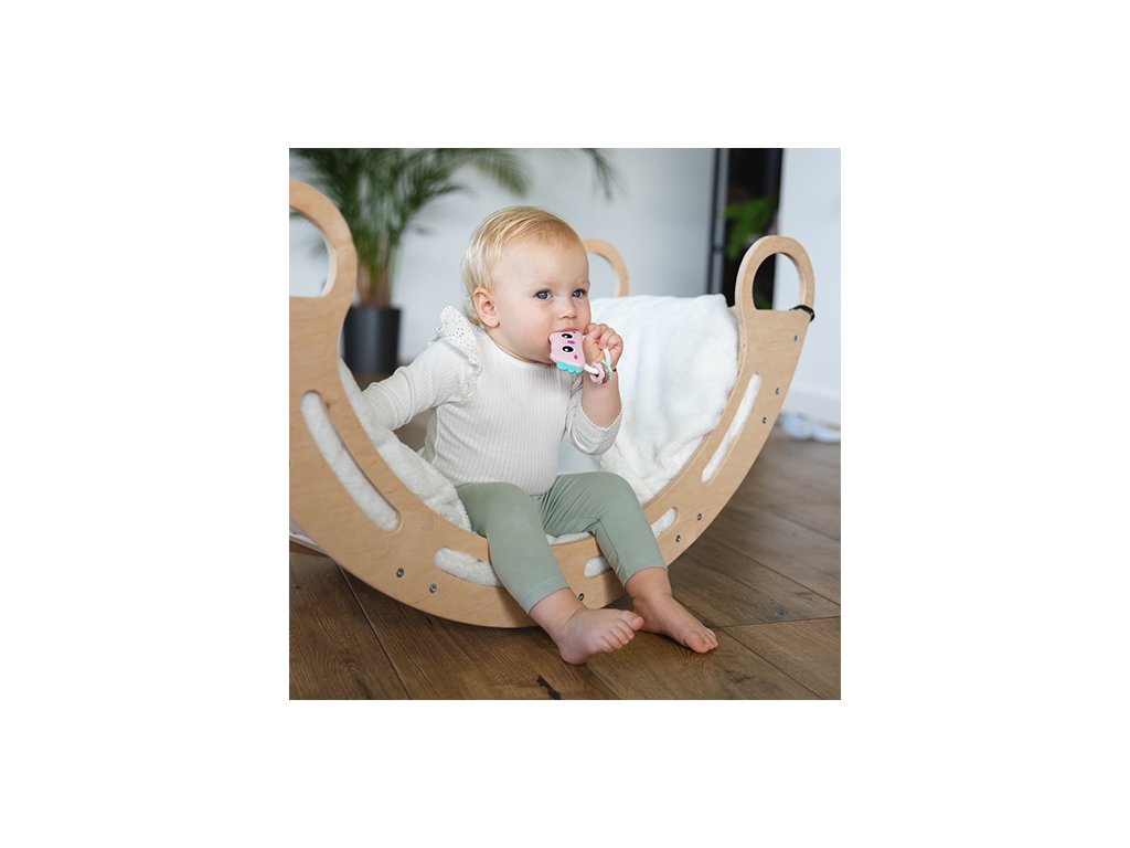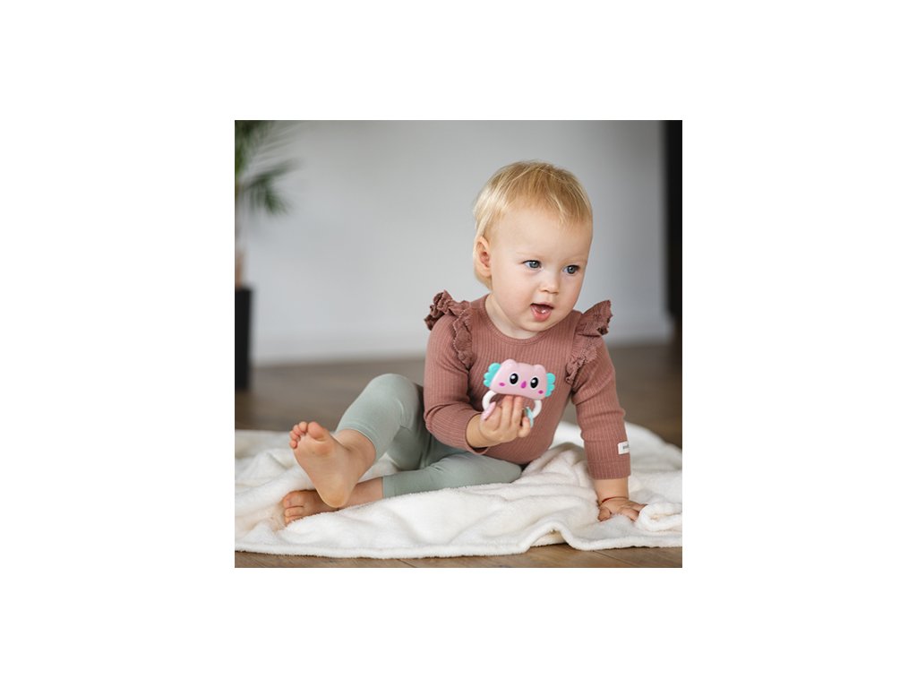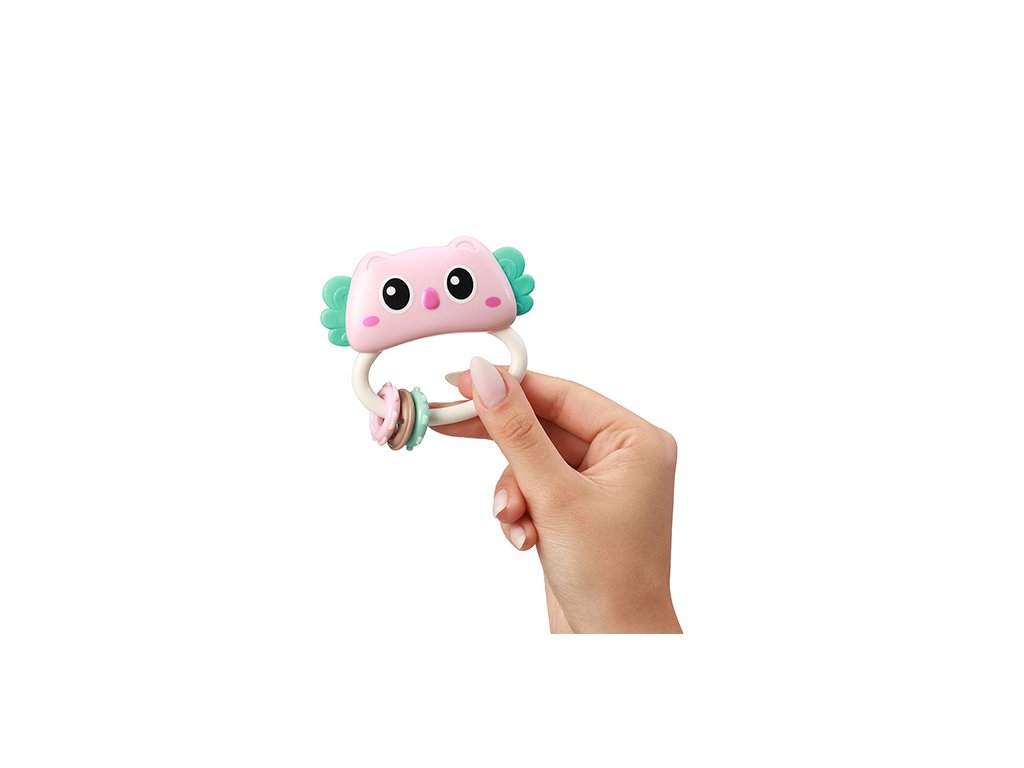 Farebná hrkálka SOVA je perfektnou prvou hračkou pre vaše dieťatko. Je celá vyrobená z bezpečných a na dotyk príjemných materiálov. Mäkké ušká hrkálky pomáhajú dieťatku v období prerezávania zúbkov , zatiaľ čo farebné krúžky vydávajú zvuk. Hrkálka SOVA je skvelý spôsob, ako rozvíjať koordináciu a manuálne zručnosti zábavným a bezpečným spôsobom.