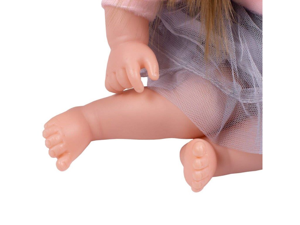 Detská bábika PlayTo Nina. Hlava, ruky a nohy sú vyrobené z gumy, telíčko potom z mäkkého materiálu. Bábika má milú tváričku, ktorá vyzerá ako naozajstné bábätko. Dĺžka bábiky je 46 cm. Bábika má česky hovoriaci modul, ktorý sa nachádza v kapsičke na brušku. Modul po stlačení prehráva 5 piesní a hovorí 14 českých viet.Bábika spieva tieto české pesničky: