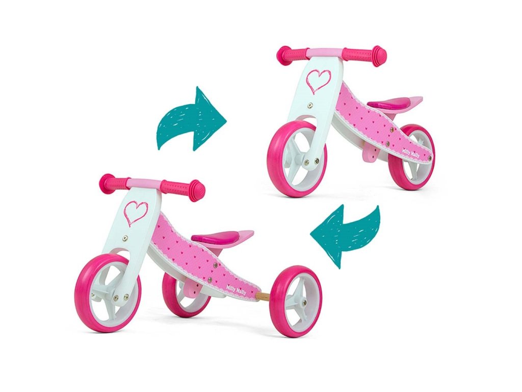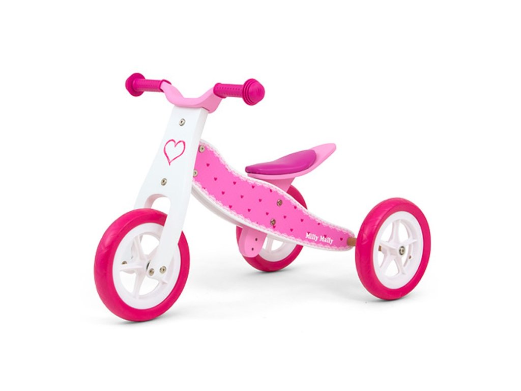 Detské multifunkčné odrážadlo bicykel 2v1 Milly Mally JAKE Hearts