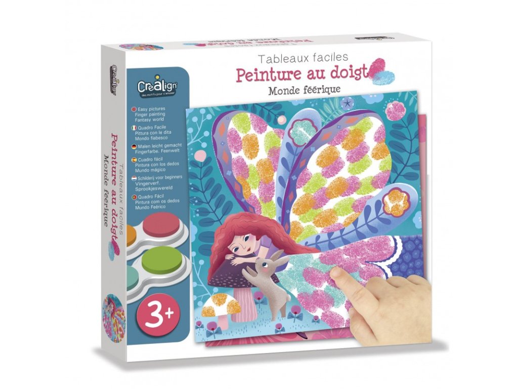 Malování prsty Svět víl 3+Malujte pohádky otisky prstů!Kreativní sada pro děti Malování prsty Svět víl od francouzské značky Crea Lign ze série Simple Pictures je vhodná pro děti od 3 let. Obsahuje 6 obrázků víl k vymalování a paletu se 4 barevnými polštářky na otisky prstů. Díky nim si děti mohou rozkošná lesní zvířátka krásně vybarvit pouze pomocí otisků prstů. Součástí balení je také 1 houbička na následné vystavení obrázků a 1 hadřík na otírání prstů.skvělé pro rozvoj kreativityMalování prsty podporuje rozvoj jemné motoriky, představivosti a kreativity. Výrobek je vysoce kvalitní a bezpečný, stejně jako všechny ostatní výrobky francouzské značky Crea Lign. Jejím cílem je vyvíjet kreativní potřeby a hry, které podporují rozvoj dětí a umožňují každému z nich najít to, co ho baví.Doplňkové parametry