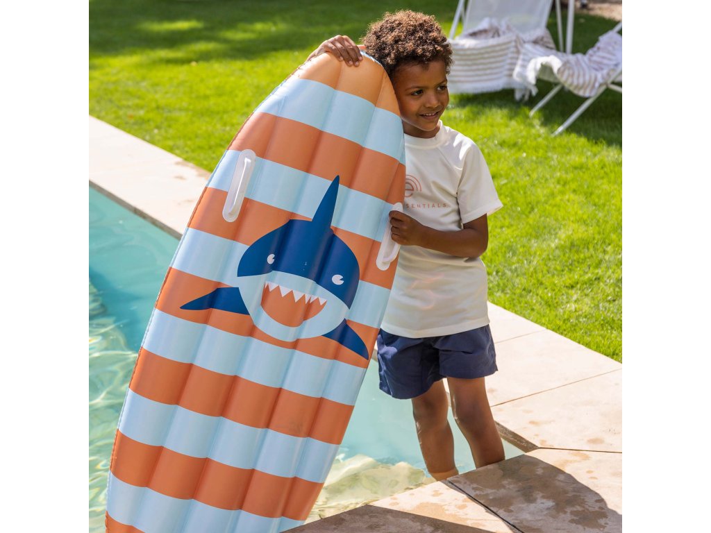 Nafukovací prkno Surf SharkSkvělá letní zábavaVeselé nafukovací prkno o délce 120 cm od společnosti Swim Essentials v oblíbeném designu žraloka udělá dětem radost v bazénu i na dovolené u moře. Děti se mohou houpat na vlnách, pořádat vodní bitvy, ale díky dvěma pevným držadlům poskytuje nafukovací surfovací prkno také potřebnou oporu dětem, které se vody ještě trochu bojí.snadno sbalitelné na dovolenouSurfovací prkno je určeno pro děti přibližně od 6 let. Je 120 cm dlouhý a dostatečně široký, aby na něm dítě mohlo pohodlně sedět. Díky nízké hmotnosti 500 g se snadno sbalí na dovolenou.nafukovací surf Shark - jedinečný partner na voduPrémiová holandská značka Swim Essentials se u všech svých výrobků zaměřuje na vysokou kvalitu, funkčnost a nezaměnitelný styl. Také toto nafukovací surfovací prkno je vyrobeno z pevného a odolného PVC. V balení najdete také jednu sadu na zalátání případných děr. Výrobek splňuje všechny evropské předpisy.Doplňkové parametry