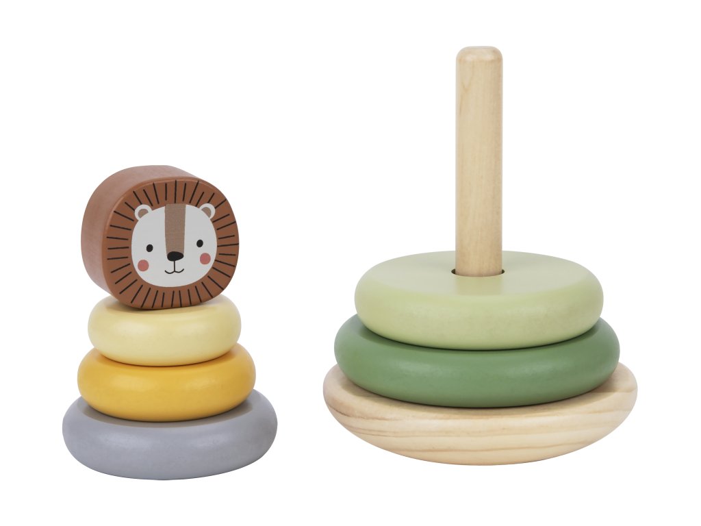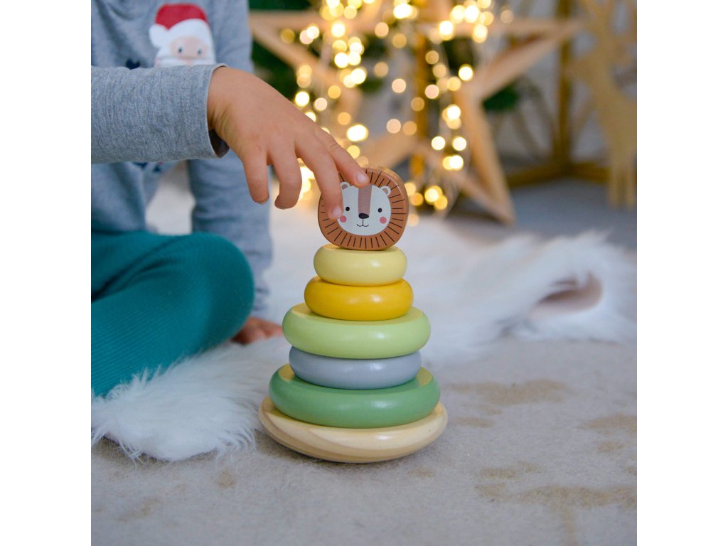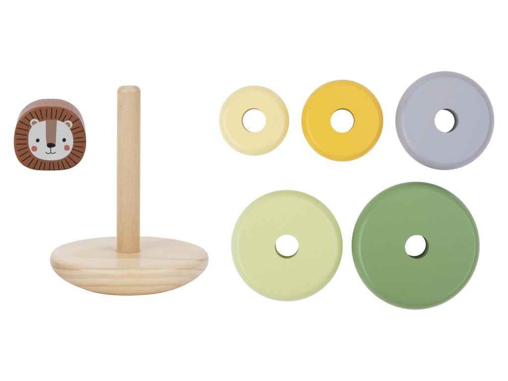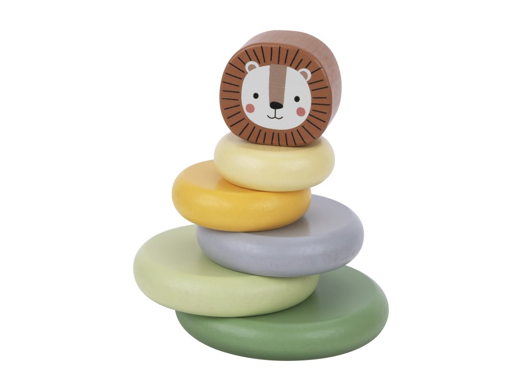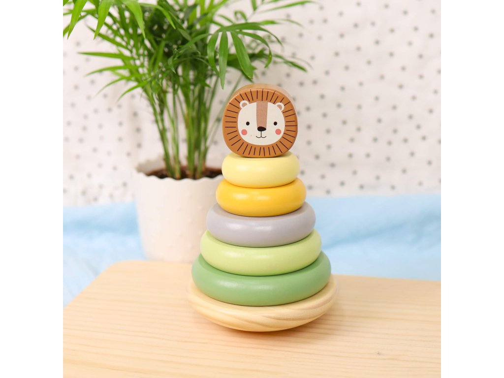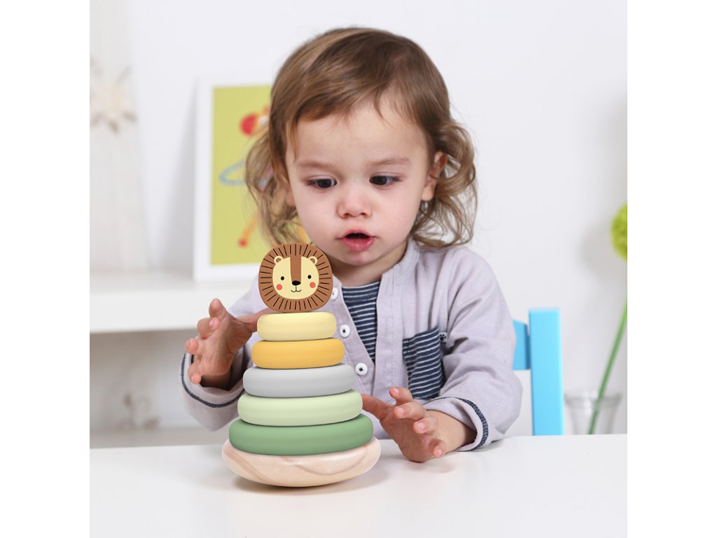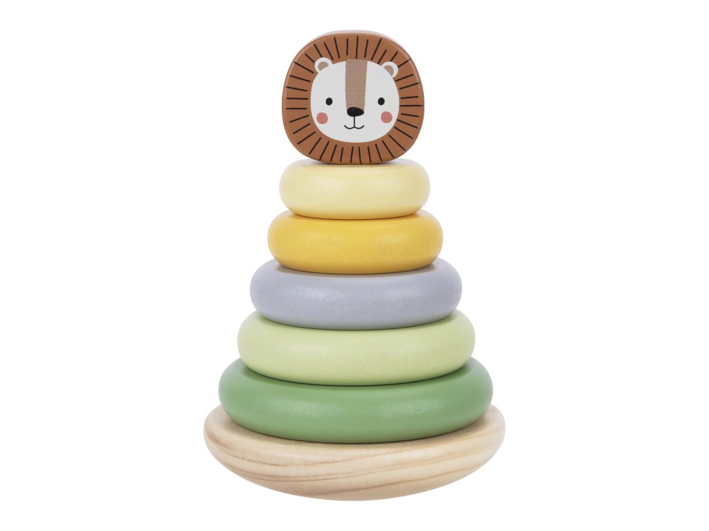 Pastelové kroužky se lvemTradiční hračka s originálním designemDřevěná pyramida se lvem v pastelových barvách od Tooky Toy umožňuje dětem skládat zvíře různými způsoby. Na pevnou dřevěnou základnu s tyčí mohou děti nasadit 5 barevných kroužků podle své fantazie. Jakmile z kroužků vytvoří tělo lva, stačí už jen připevnit hlavu.dřevěná pyramida Lev podporuje rozvoj dětíMotorická rozkládací hračka podporuje rozvoj kreativity, jemné motoriky, vnímání barev, pozornosti a trpělivosti. Hračka je vyrobena s ohledem na bezpečnost dětí a životní prostředí. Použité barvy jsou netoxické a dermatologicky testované. Skvělý dárek pro nejmenší děti!
