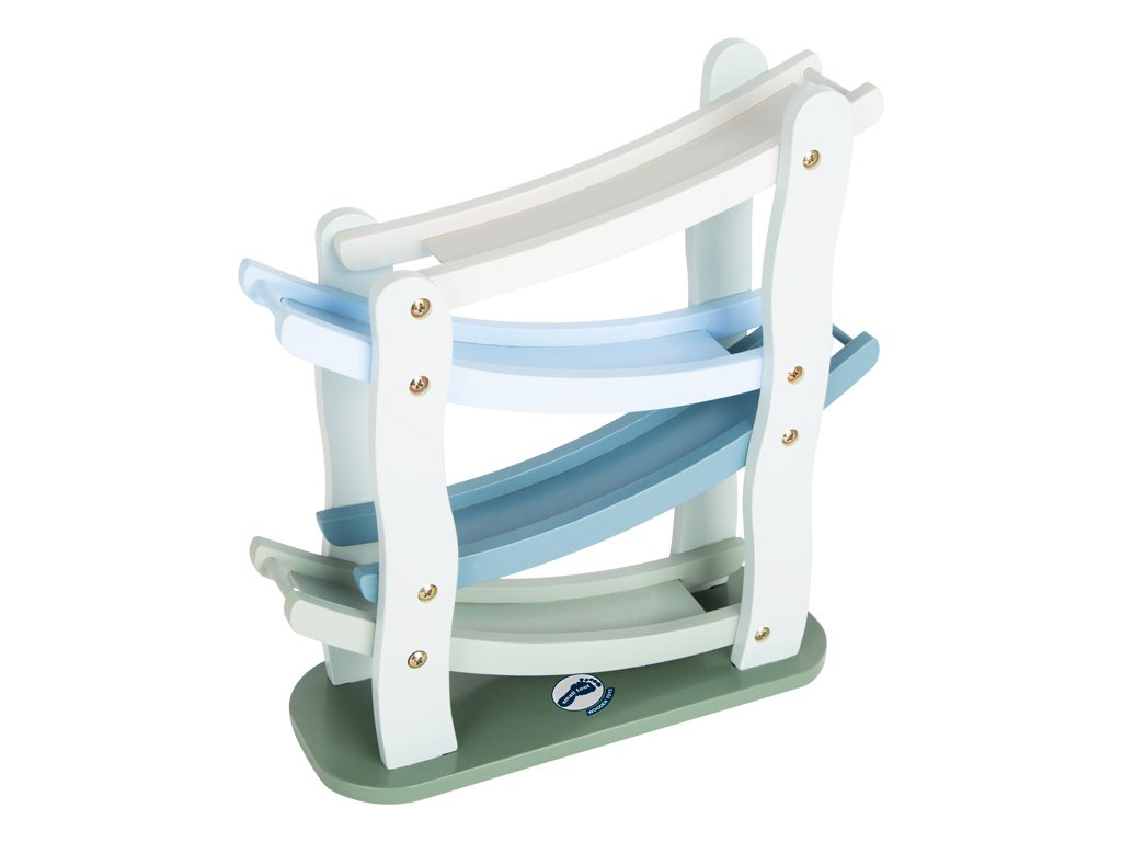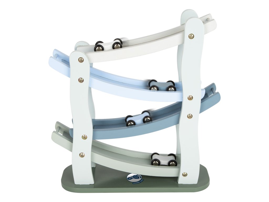 Závodní dráha modráZávod na start, závod začíná.Tato dřevěná závodní dráha s klipem obsahuje 4 autíčka a je v krásných modrých a zelených odstínech. Děti při hře sledují, jak se autíčka pohybují z jednoho patra do druhého a dělají salta, než dojedou do cílové rovinky. hračka rozvíjí jemnou motoriku dětí a koordinaci ruka-oko. kaskádová závodní dráha patří do každého dětského pokojíčku, který si rád hraje s autíčky. Dráha je vyrobena z pevného a kvalitně zpracovaného dřeva, autíčka jsou oboustranná a mají pogumovaná kola.Doplňkové parametry