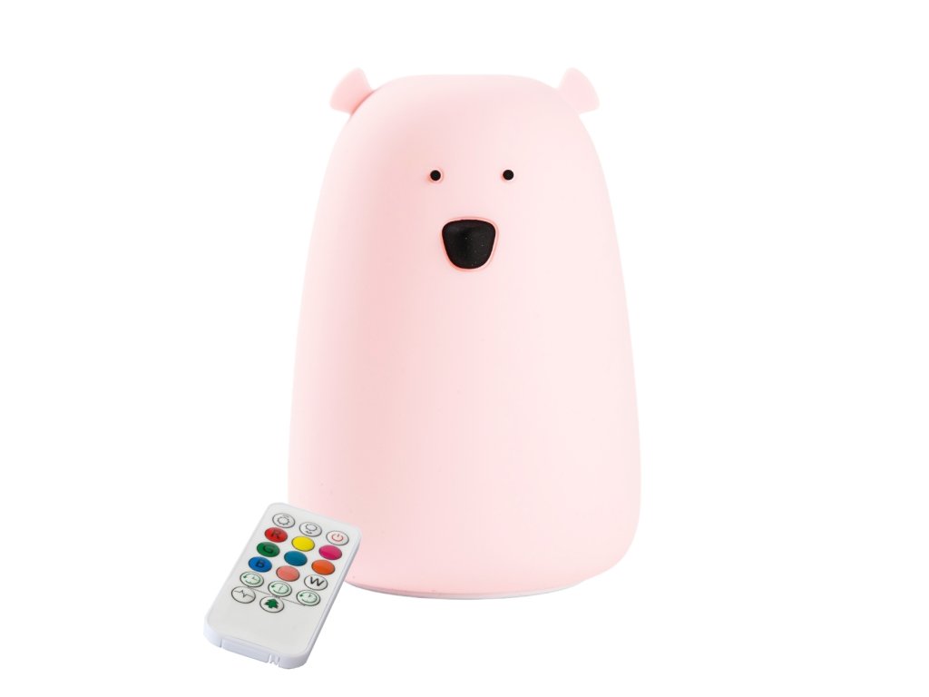 Kinder-Touch-Lampe mit Fernbedienung Big Teddy Bear PinkSüße Kinderlampe mit FernbedienungDie Kinder-Touch-Lampe Big Teddy Bear ist eine tolle Ergänzung für jedes Kinderzimmer. Sie bietet eine Vielzahl von Lichtoptionen in sieben verschiedenen Farben, darunter ein Licht, das sich zum Lesen eines Buches zur Schlafenszeit eignet, und ein sanftes Licht, das Kindern beim Einschlafen hilft. Sie lässt sich einfach durch Berührung bedienen und ist tragbar, so dass die Kinder sie überallhin mitnehmen können.Praktisches und tragbares NachtlichtDie Babylampe macht es Eltern leicht, sich nachts um ihr Baby zu kümmern. Sie können es leicht im Auge behalten, es stillen oder wickeln. Nach einer vollständigen Aufladung hält die Lampe bis zu 12 Stunden und bietet die Möglichkeit, sich nach 2 Stunden automatisch auszuschalten, was Energie spart. Mit der Fernbedienung können Sie die Lampe ausschalten, ohne sich Sorgen machen zu müssen, Ihr Baby zu wecken.Eigenschaften:- weiches und berührungsfreundliches BPA-freies Silikon- Touch Control- leuchtet in 7 Farben- veränderbare Lichtintensität- Leuchtdauer nach einer vollen Ladung ca. 12 Stunden- automatische Abschaltung nach 2 Stunden- Multifunktions-Fernbedienung- wiederaufladbar mit USB Typ-C Kabel (im Lieferumfang enthalten)- erwärmt sich nicht- leicht zu reinigenZusätzliche Parameter