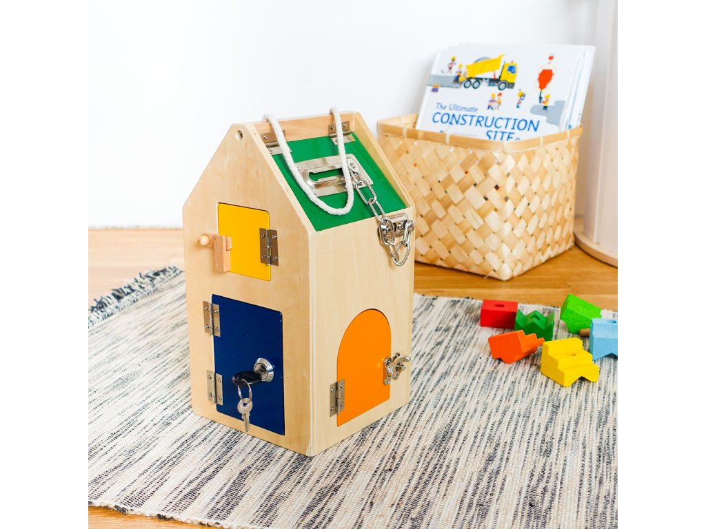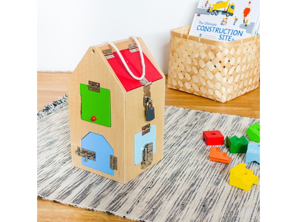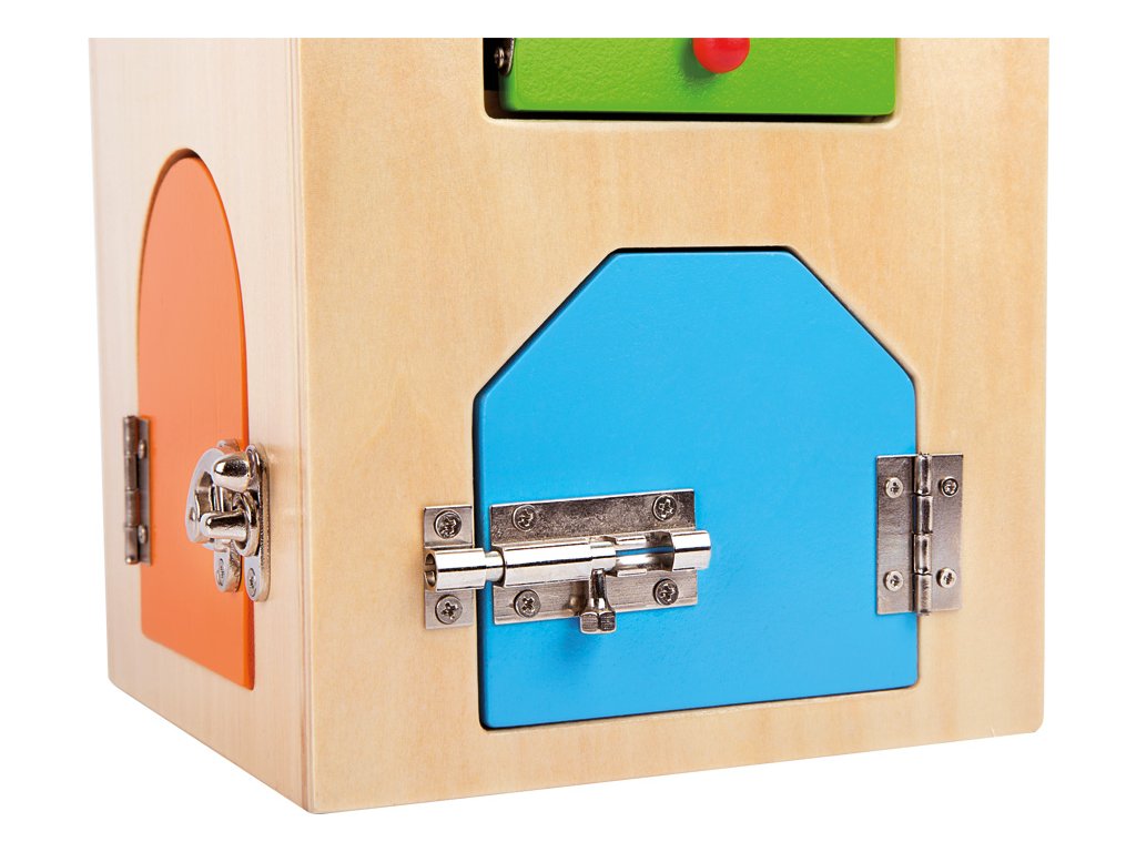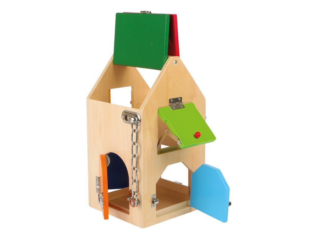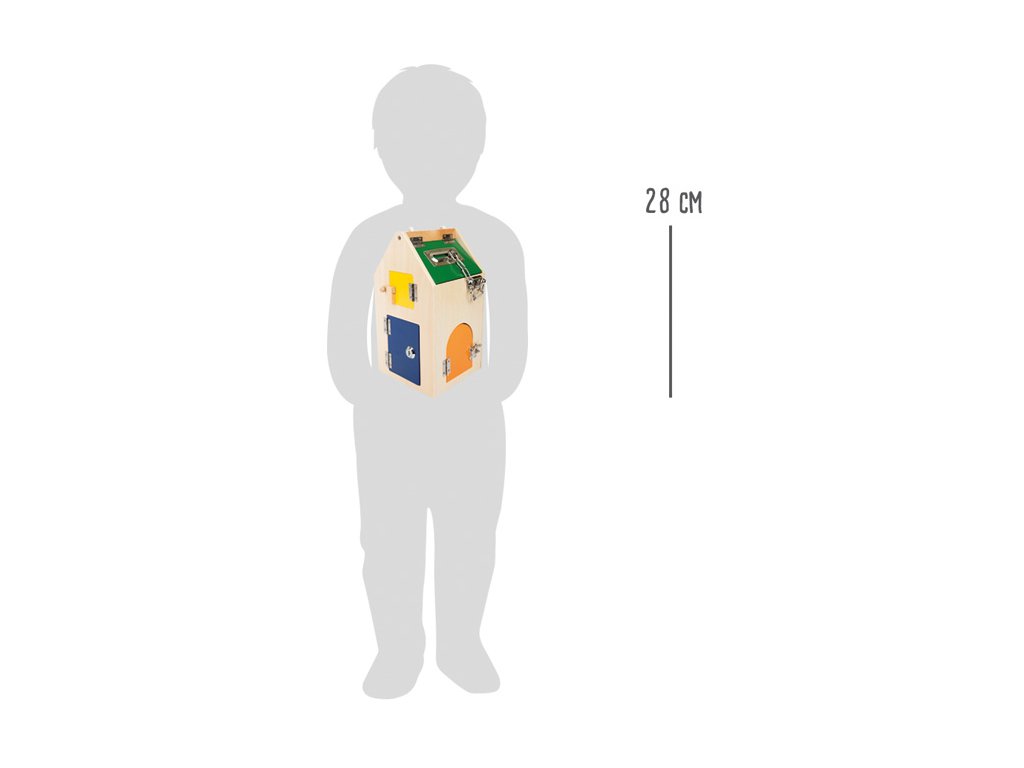 Haus mit Schlössern Holzhaus mit verschiedenen Schlössern und Kettentüren, D-Schlössern und Zylindern. Jeder Entdecker wird dieses Haus lieben, um seine Schätze zu verstecken. Das Motorikspielzeug fördert die Geschicklichkeit der Kinder! Abmessungen: 27x 17 cmAlter: 3+ Spielzeug für Kinder ab drei Jahren geeignet (enthält Kleinteile). Empfehlung: Kinder bis zu drei Jahren - nur unter Aufsicht von Erwachsenen spielen, Die deutsche Firma Legler konzentriert sich seit 1996 auf die Herstellung von Qualitätsholzspielzeug. Alle Holzspielzeuge mit kleinen Füßen sind CE-gekennzeichnet und werden nach der europäischen Sicherheitsnorm für Spielzeug EN 71 hergestellt. Die verwendeten Farben wurden speziell für Holzspielzeug entwickelt und sind auch gegen den Speichel der Kinder beständig. Sie machen Kindern von klein auf Freude und entwickeln ihre taktilen und sensorischen Fähigkeiten. Ziel der Marke small foot ist es, die geistige und körperliche Entwicklung von Kindern zu fördern. .Zusätzliche Parameter