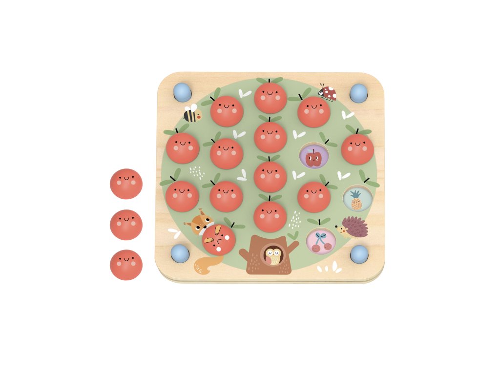 Holzspielzeug Pexeso Apples PastelOriginal Pexeso, das sich ständig verändertDas Holzspielzeug Pexeso Apples von Tooky Toy in sanften Pastellfarben wird Kinder durch sein originelles Design und die Variabilität des Spiels begeistern. Das Spiel ändert sich nämlich je nachdem, welche der 10 Blöcke man gerade in den großen Holzbaum steckt. Werden es Autos, Tiere, Zahlen oder Formen sein? Dann steckt man 16 Holzäpfel in die Löcher des Baumes. Die Spieler legen dann jeweils 2 Äpfel weg und sehen, ob sich darunter die gleichen Bilder verstecken.GedächtnisentwicklungDie Holzapfelpuzzles eignen sich hervorragend zum Gedächtnistraining, zur Wortschatzentwicklung und zum Erlernen von Zahlen oder Buchstaben. Die Kinder trainieren auch ihre Feinmotorik und ihre Hand-Augen-Koordination. Das hölzerne Gedächtnisspiel eignet sich hervorragend als Gesellschaftsspiel, aber die Kinder können auch alleine damit Spaß haben. Es ist aus nachhaltig angebautem Holz hergestellt, die verwendeten Farben sind ungiftig und für Kinder ungefährlich.hier die SpielregelnZusätzliche Parameter