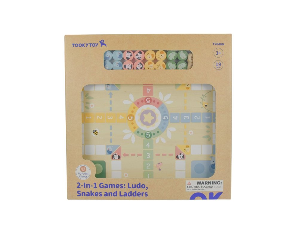 2in1 Spiel Man, don't be angry!, Snakes and ladders PastellDas 2in1 Spiel wird die ganze Familie begeisternDas vielseitige Brettspiel aus Holz von Took Toy in Pastellfarben darf in keinem Haushalt fehlen. Auf der einen Seite des Spielplans finden Sie den Klassiker Man, Don't Be Angry. Sie können zwischen Figuren von Elefanten, Zebras, Giraffen oder Krokodilen wählen. Auf der anderen Seite des Spielplans befindet sich ein weiterer Klassiker - Snakes and Ladders.Kinder lernen, Brettspiele zu spielenDank des Spiels lernen sie, was Verlieren und Gewinnen ist, abwechselnd zu spielen und ihre Zählfähigkeiten zu verbessern. Mit dem niedlichen Spielmaterial spielen die Kinder auch gerne selbständig. Das Holzbrett, die Figuren und die Würfel sind aus hochwertigem Holz aus nachhaltiger Forstwirtschaft gefertigt, mit ungiftigen Farben bemalt und für Kinder sicher.Hier finden Sie die SpielregelnZusätzliche Parameter
