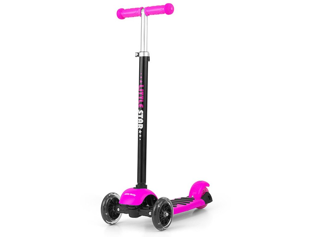 Super štýlová detská kolobežka Milly Mally Little Star. Nie je to len kolobežka, je to tiež odrážadlo pre deti od druhých narodenín, ktoré má sedadlo aj vodiacu tyč pre rodičov. Nosnosť do 20 kg. Sedadlo aj vodiacu tyč možno jednoducho zložiť a z odrážadlá sa razom stane kolobežka s nosnosťou do 50 kg.Charakteristika: