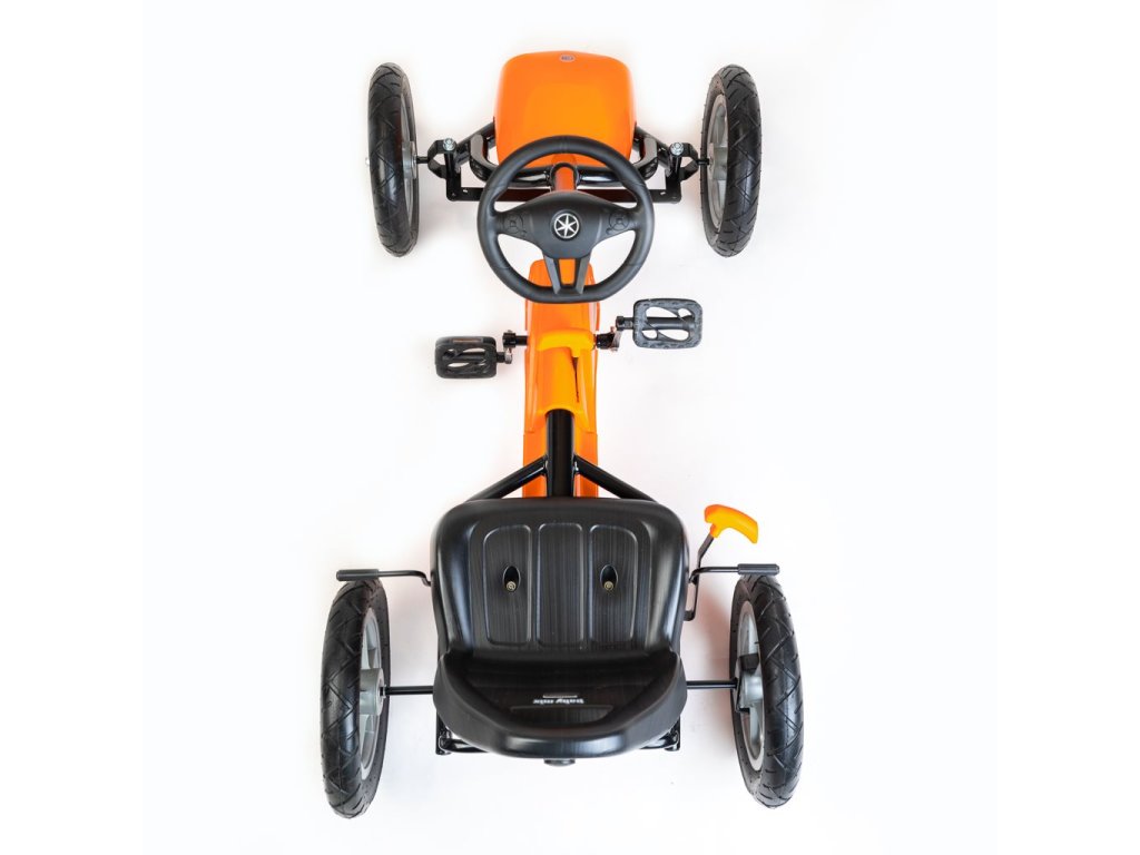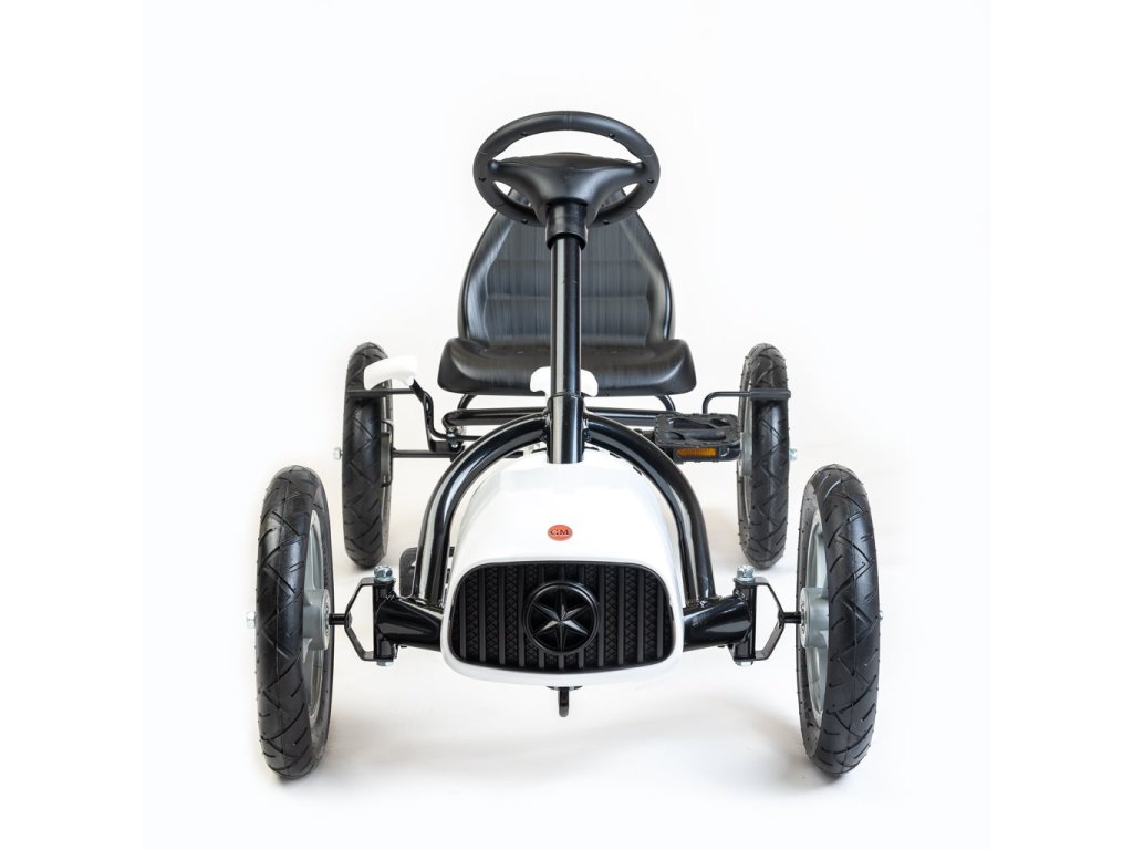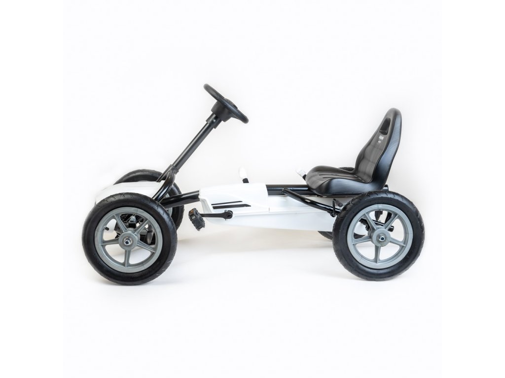 Veľké nafukovacie pneumatiky zaistia komfort a pohodlie pri jazde na akomkoľvek povrchu. Motokára má zabudovaný reťazový pohon s možnosťou odpojenia pohonu - funkcia voľnobežky a ručnú brzdu na zadnej náprave.