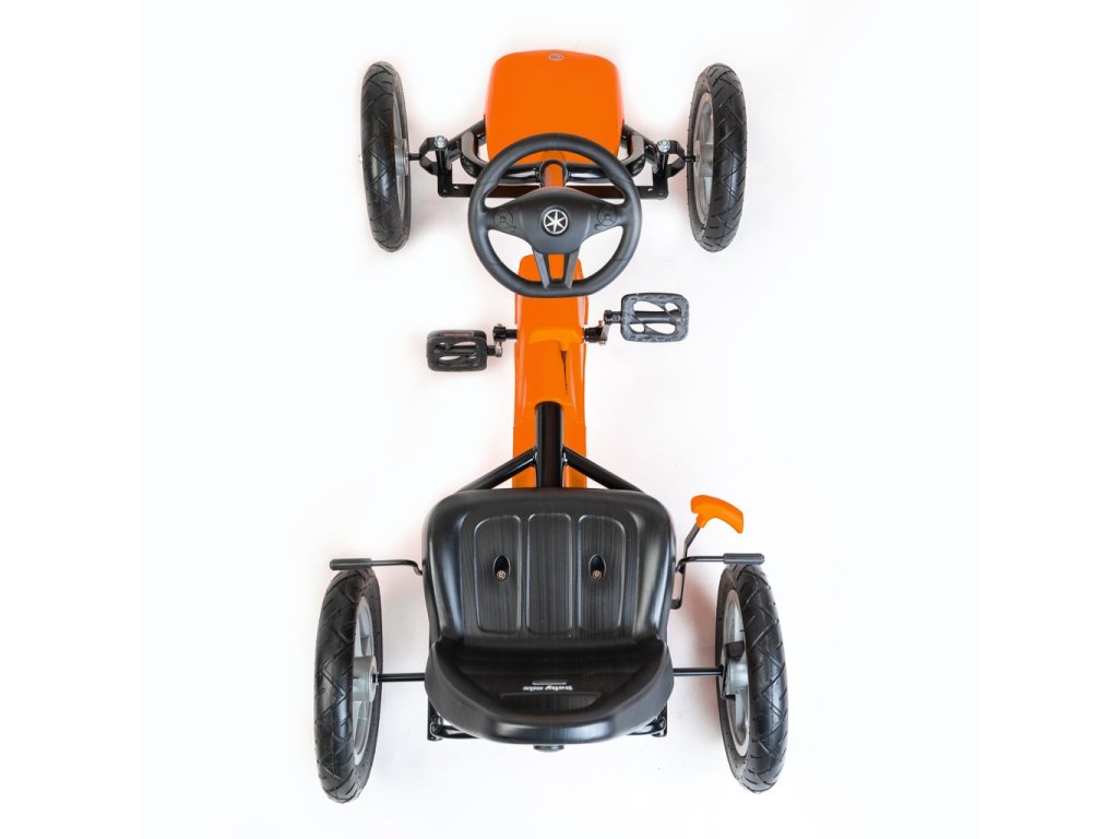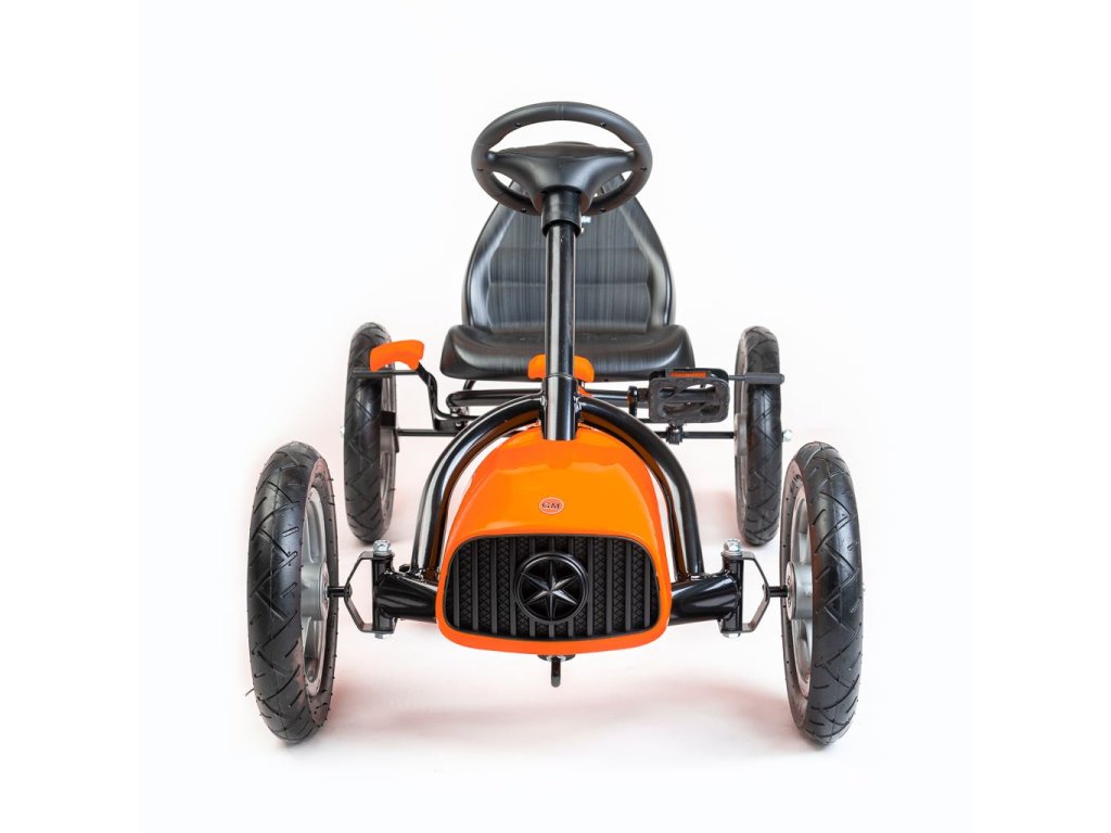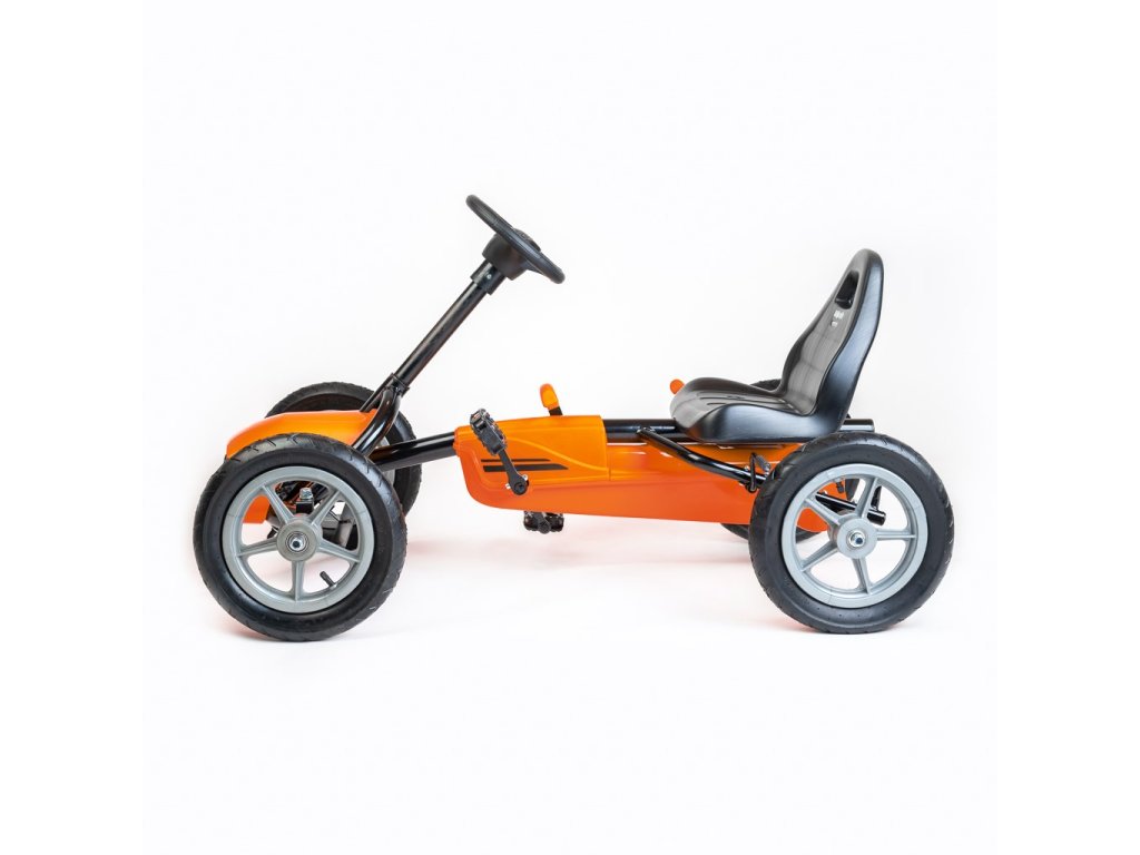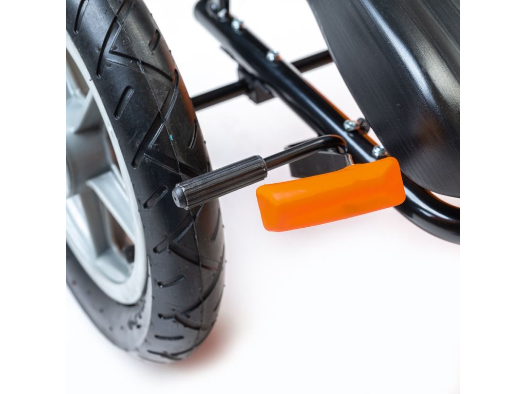 Veľké nafukovacie pneumatiky zaistia komfort a pohodlie pri jazde na akomkoľvek povrchu. Motokára má zabudovaný reťazový pohon s možnosťou odpojenia pohonu - funkcia voľnobežky a ručnú brzdu na zadnej náprave.