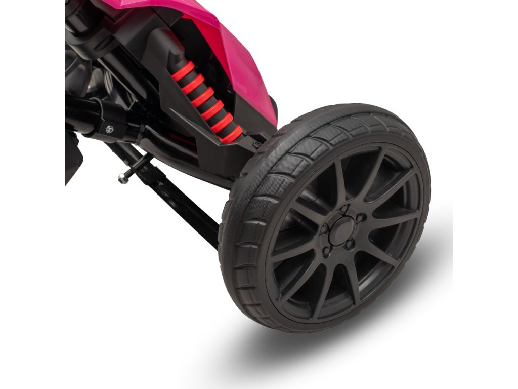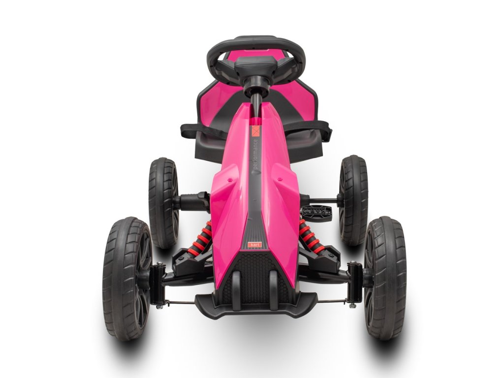Vďaka ľahkej kovovej konštrukcii je motokára nielen odolná, ale aj ľahko ovládateľná pre malých vodičov. Plne krytý reťaz a pevná ručná brzda poskytujú vysoký stupeň bezpečnosti, zatiaľ čo dizajn v pretekárskom štýle a športový volant premenia každú jazdu na dobrodružstvo. Je to dokonalý darček pre každé aktívne dieťa.