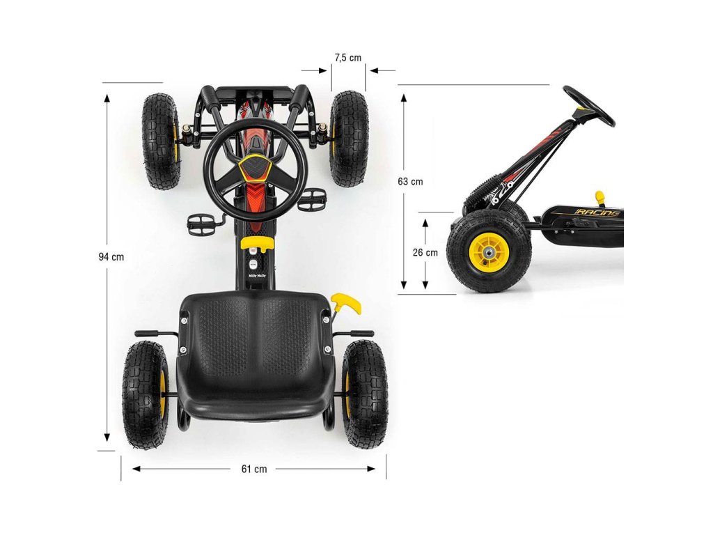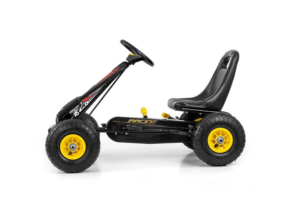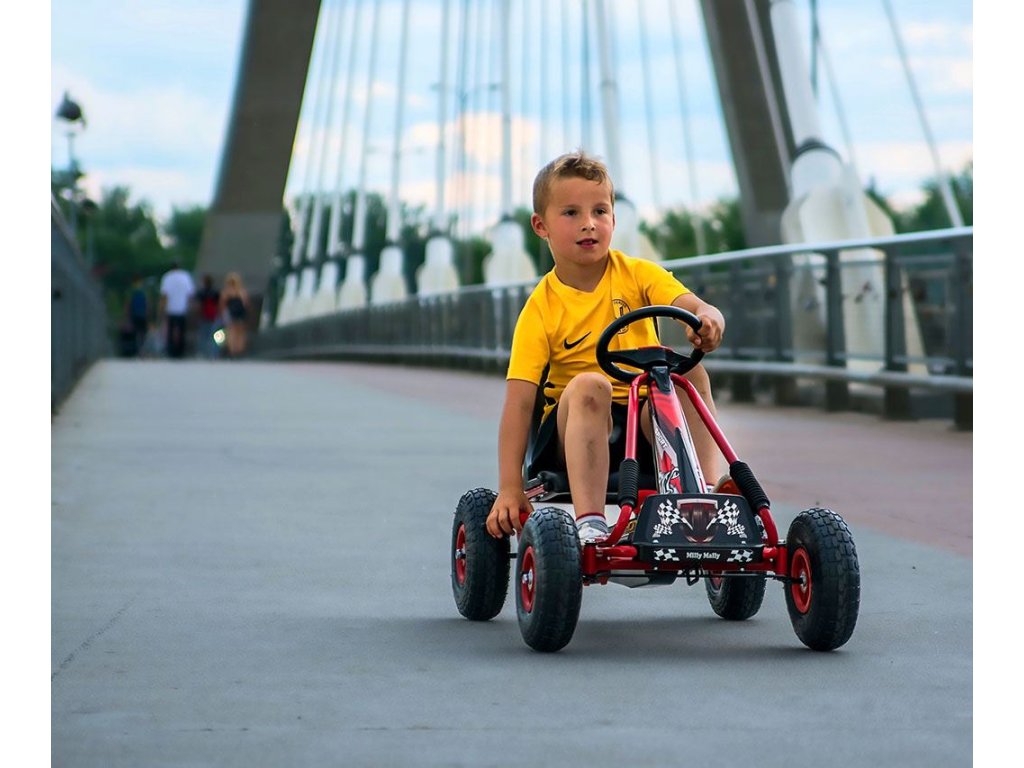 Veľká športová šliapacia motokára Thor bola navrhnutá pre najmladších vodičov a fanúšikov rýchlej jazdy. Konštrukcia z ľahkého kovu s plastovými krytmi v športovom štýle dodá každému malému vodičovi šmrnc. Pohodlie zaisťuje športovo tvarované sedadlo s nastaviteľnou vzdialenosťou od volantu. Športový volant uľahčuje riadenie vozidla a veľké nafukovacie pneumatiky zaistia komfort a pohodlie pri jazde na akomkoľvek povrchu. Motokára má zabudovaný reťazový pohon s možnosťou odpojenia pohonu - funkcia "voľnobežky" - a ručnú brzdu na zadnej náprave. Šlapadlo sa vyznačuje športovým dizajnom a vysokou kvalitou spracovania.