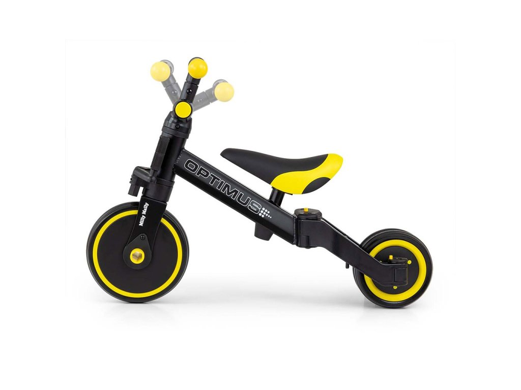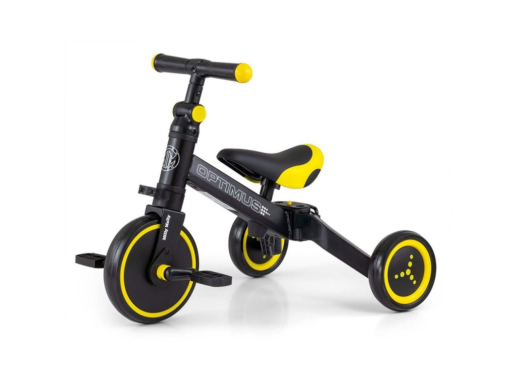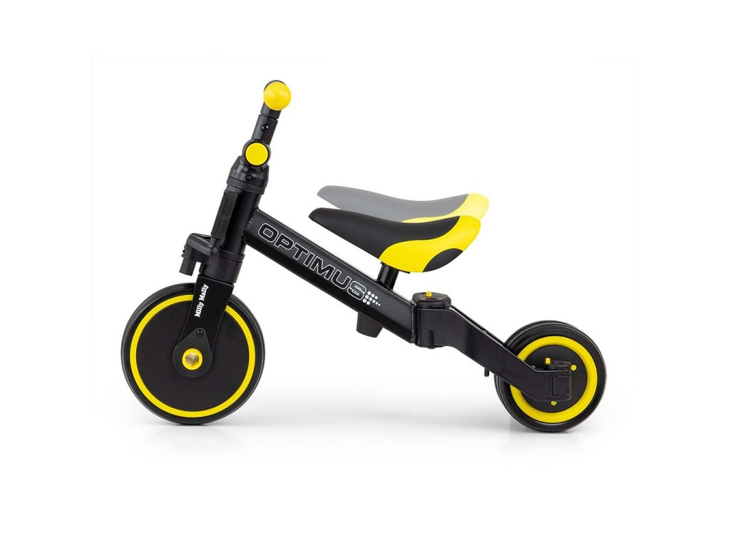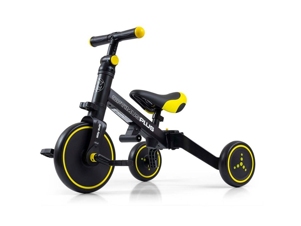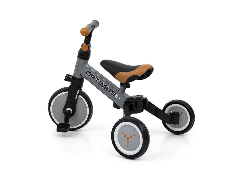 Kompaktná detská šliapacia trojkolka Milly Mally 2v1 Grande je ideálnym riešením pre deti, ktoré sa práve začínajú učiť jazdiť na bicykli a pritom ešte nie sú schopné udržať rovnováhu na dvoch kolesách. Je vyrobená z kvalitných a odolných materiálov a je ideálna na prechádzky. Veľkou výhodou tejto trojkolky je jednoduchá montáž pedálov a ľahké zloženie celej trojkolky. Penové kolesá výborne absorbujú nárázy, poskytujú dobrú priľnavosť, zaistia pohodlie počas jazdy a neunavia vášho malého pretekára. Dostatočná vzdialenosť kolies od seba poskytuje mimoriadnu stabilitu, bezpečnosť počas používania doma i vonku. Mäkké a nekĺzavé rukoväte zaistia pevné držanie riadidiel. Doraz nedovolí pretočenie riadidiel.