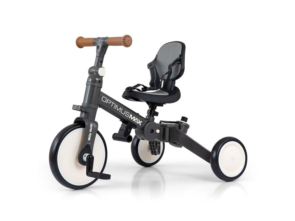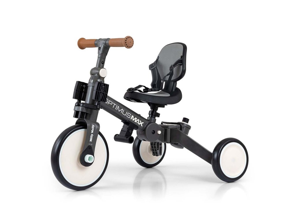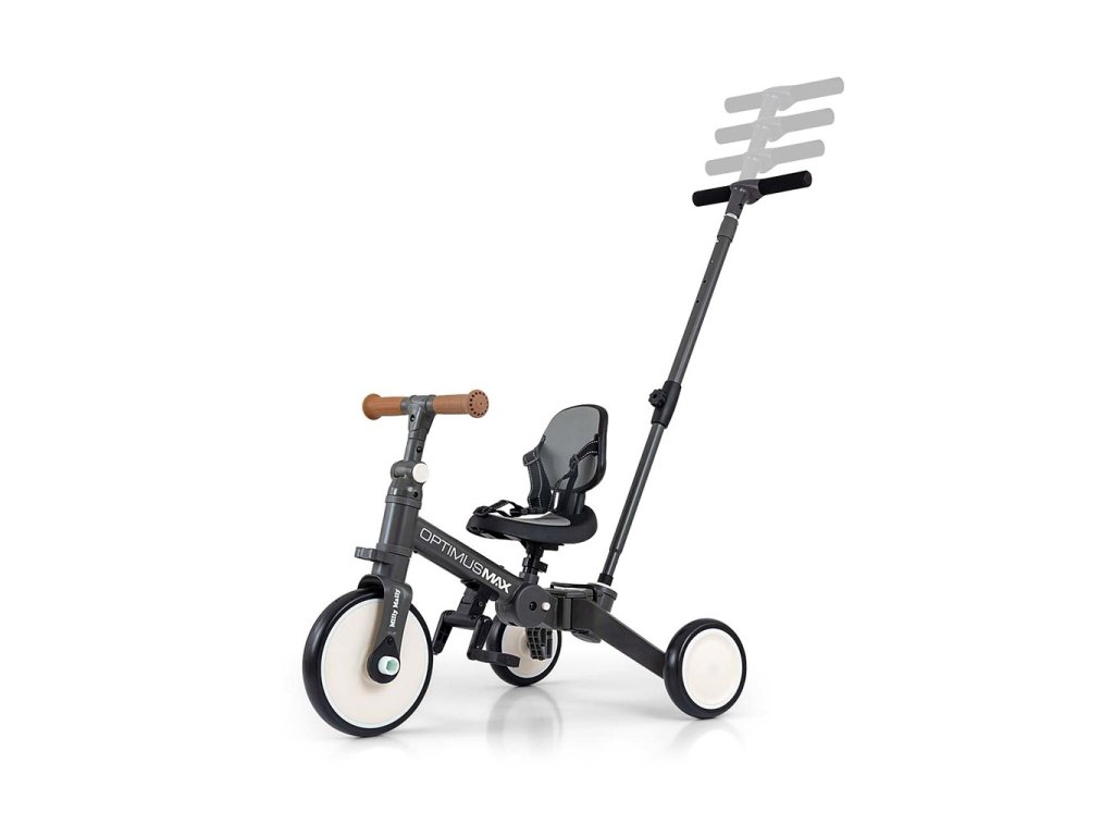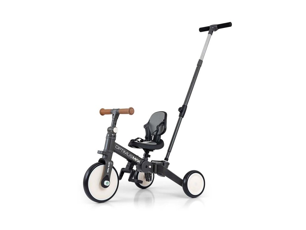 Detská trojkolka 5v1 Milly Mally Optimus Max s vodiacou tyčou dark grey