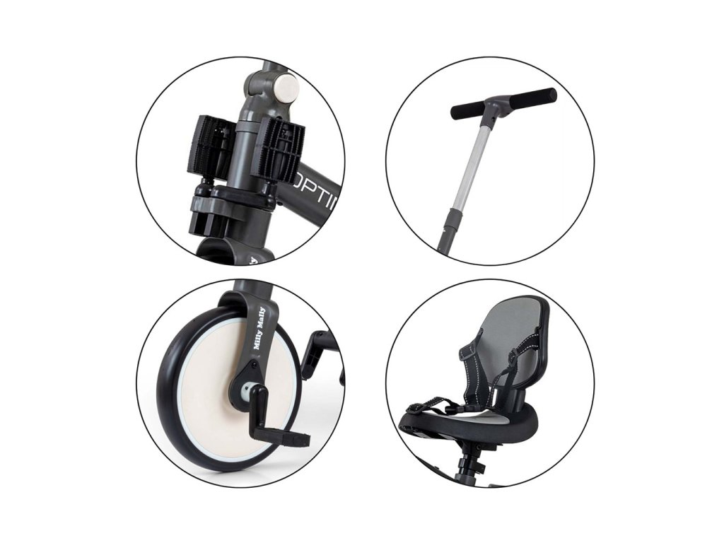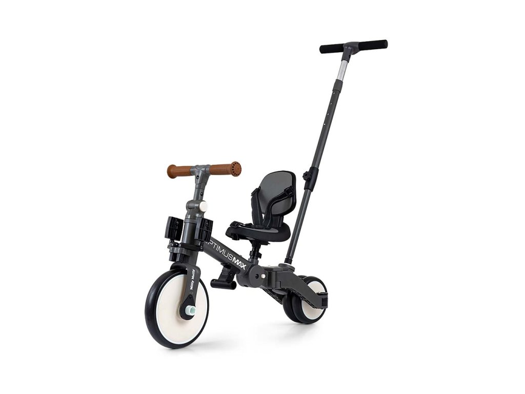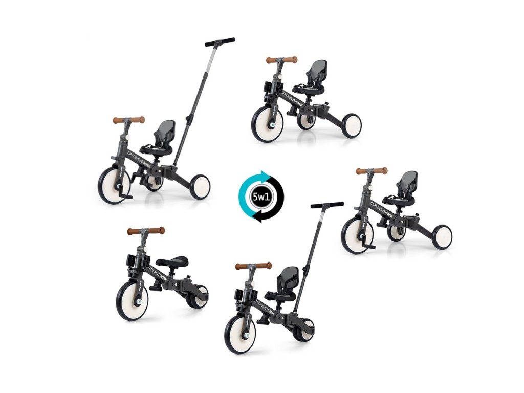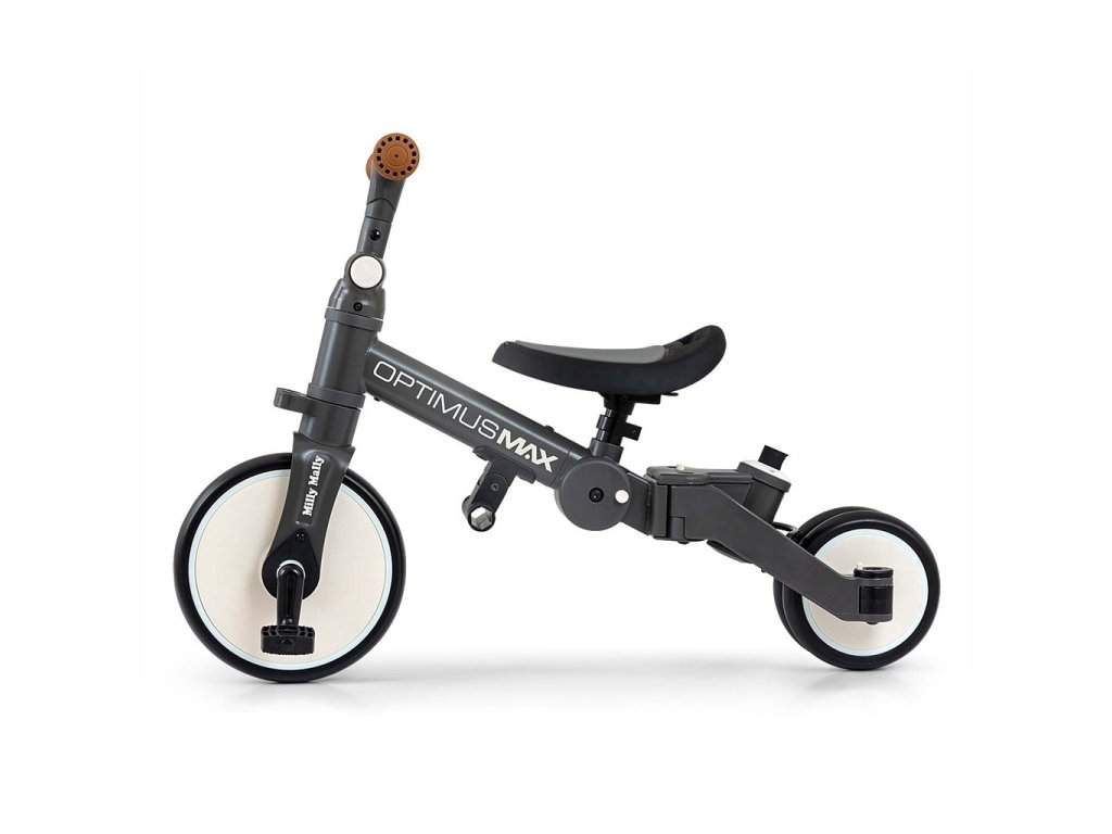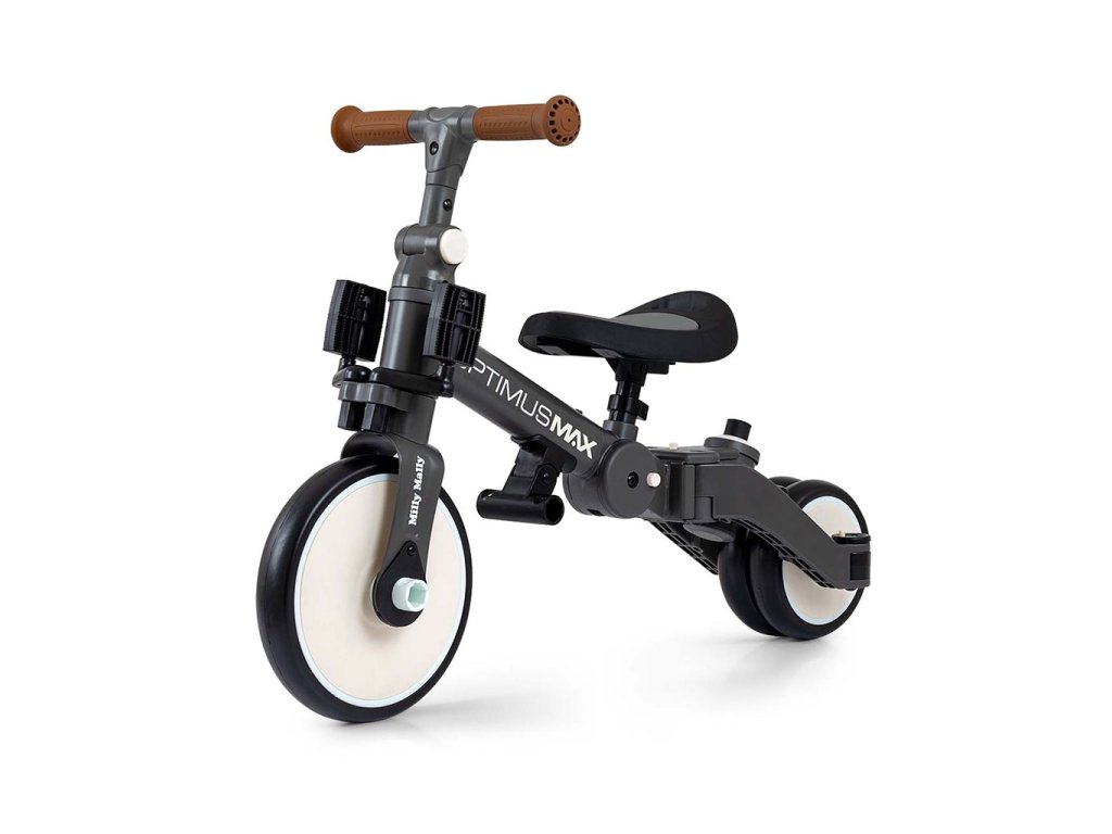 Detská trojkolka 5v1 Milly Mally Optimus Max s vodiacou tyčou dark grey