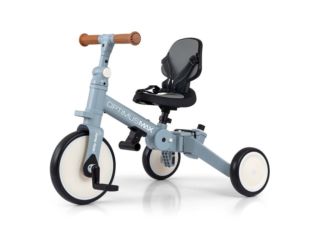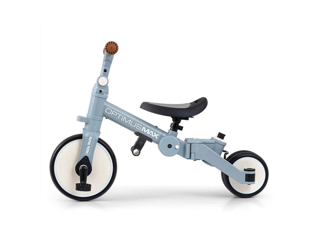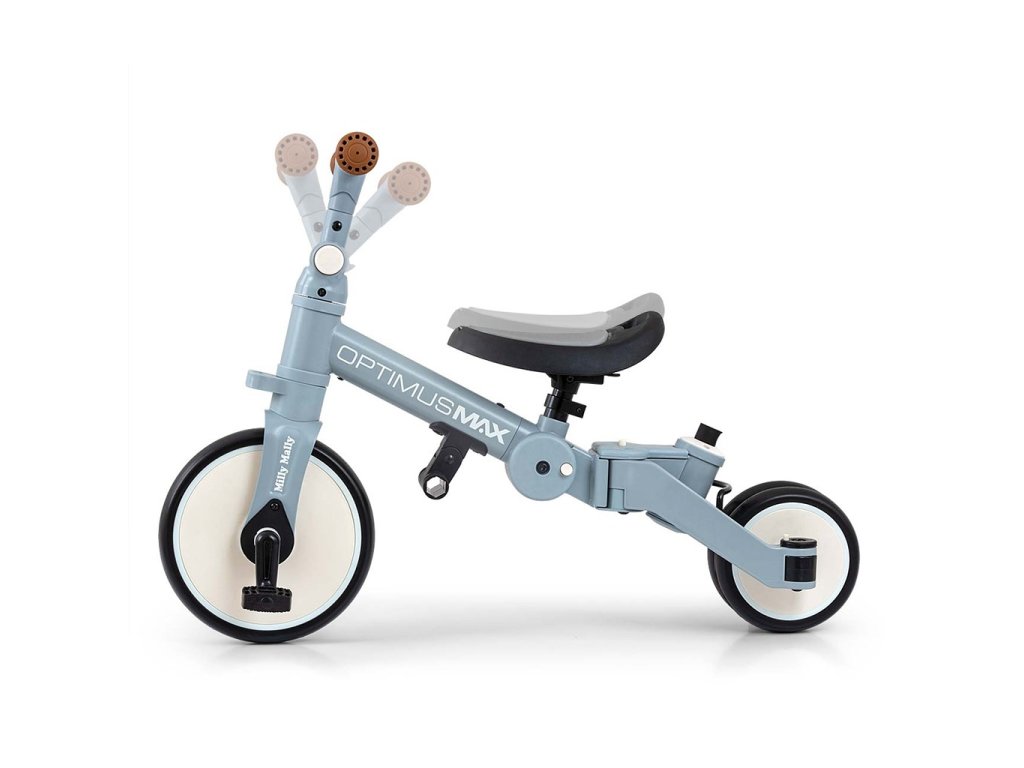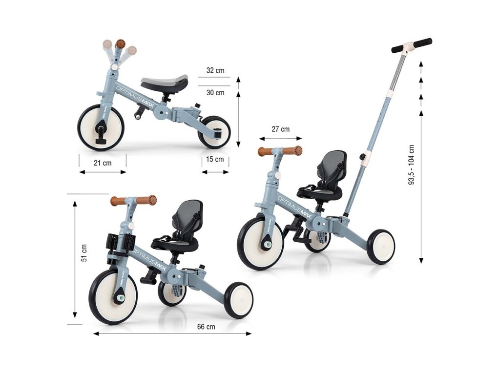 Optimus Max bol navrhnutý tak, aby sa stal jednou z najlepších volieb pre prvé vozidlo vášho dieťaťa. Vďaka stabilnej trojkolesovej konštrukcii poskytuje dieťaťu zodpovedajúcu úroveň bezpečnosti a uľahčuje získavanie nových zručností. Keď má dieťa už zvládnuté základy jazdy a nevyžaduje pomoc rodiča prostredníctvom vodiacej rukoväte, môžeme pridať pedále alebo ho zmeniť na klasické odrážadlo.