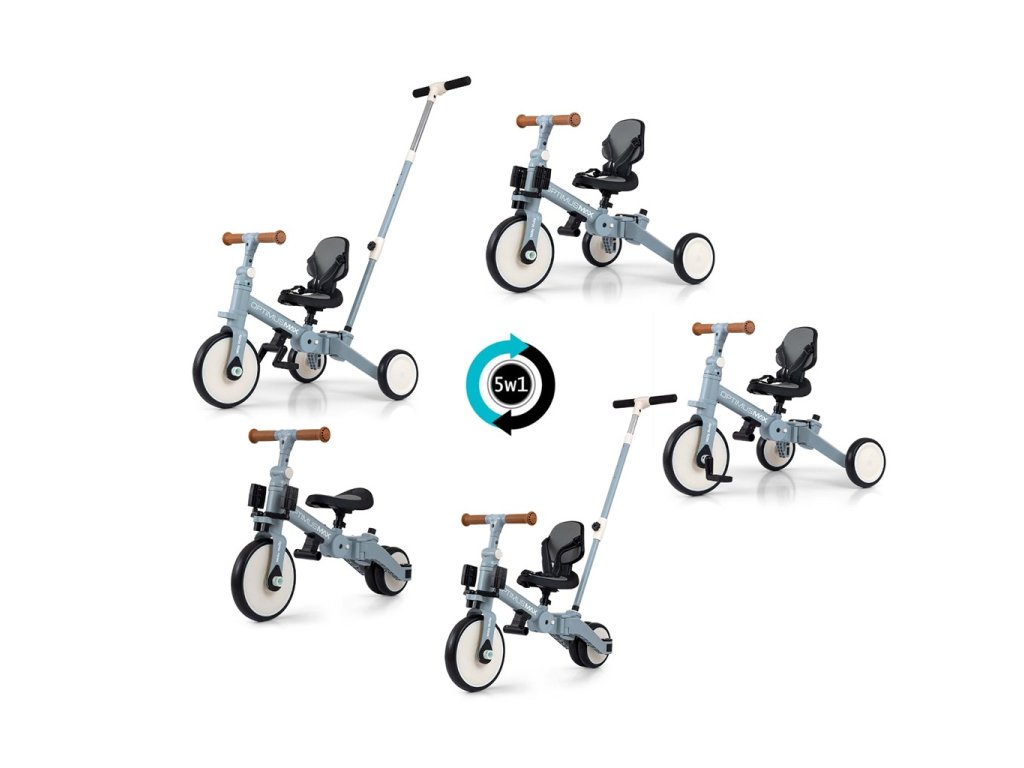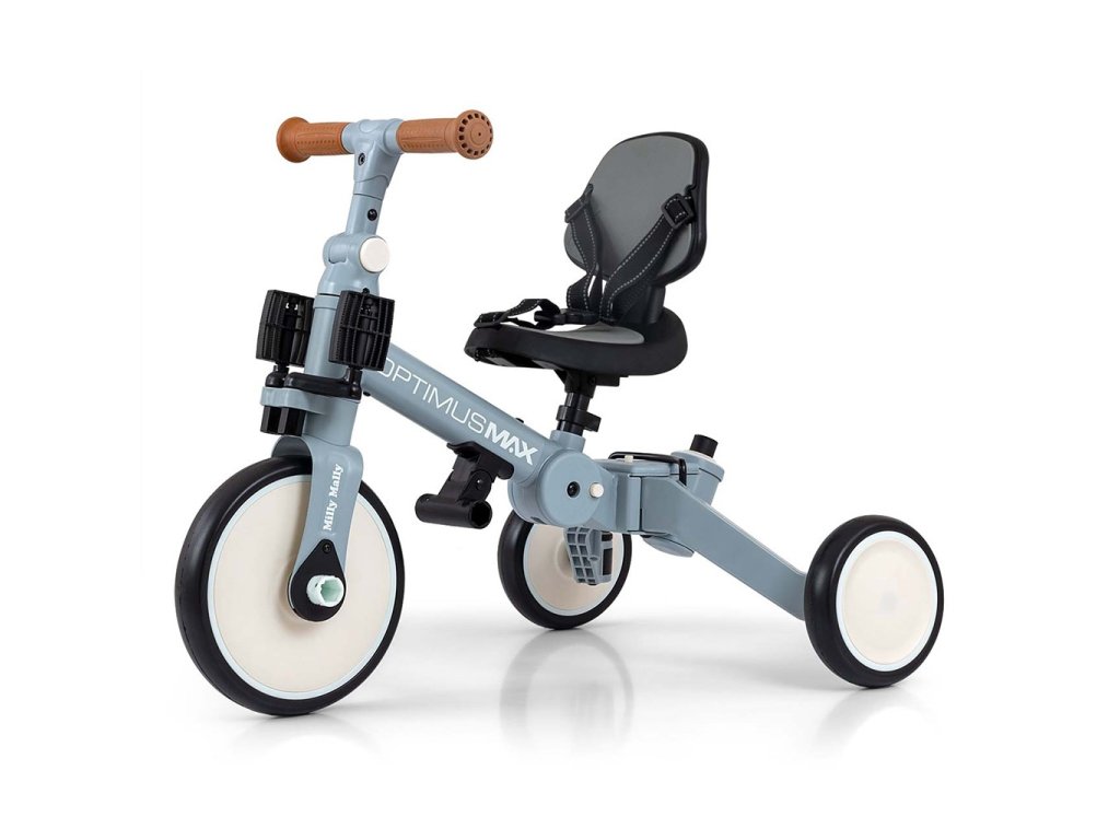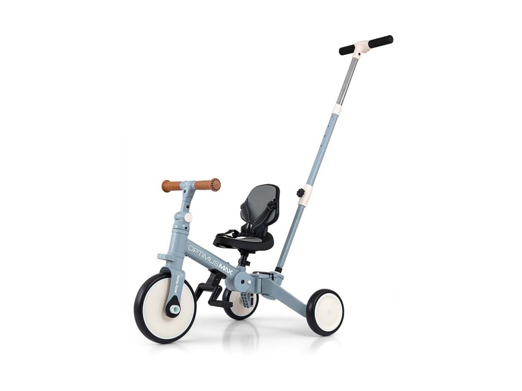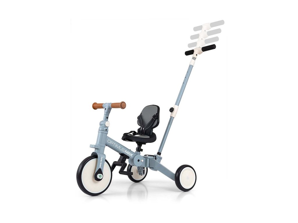 Detská trojkolka 5v1 Milly Mally Optimus Max s vodiacou tyčou denim