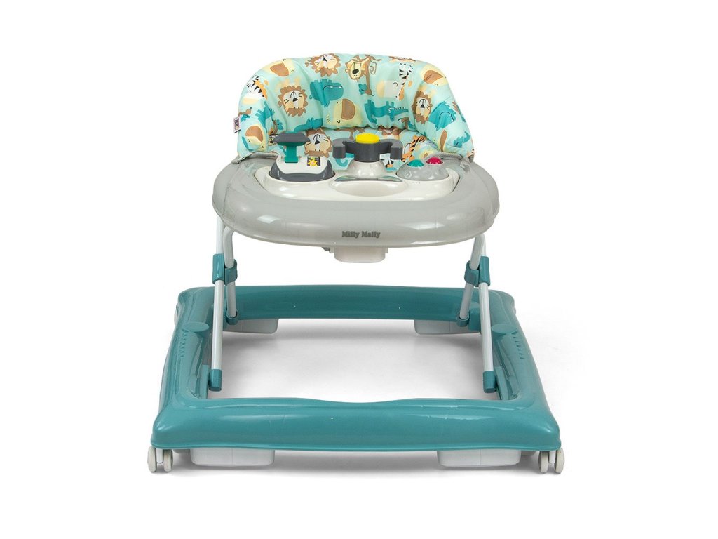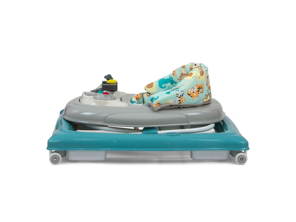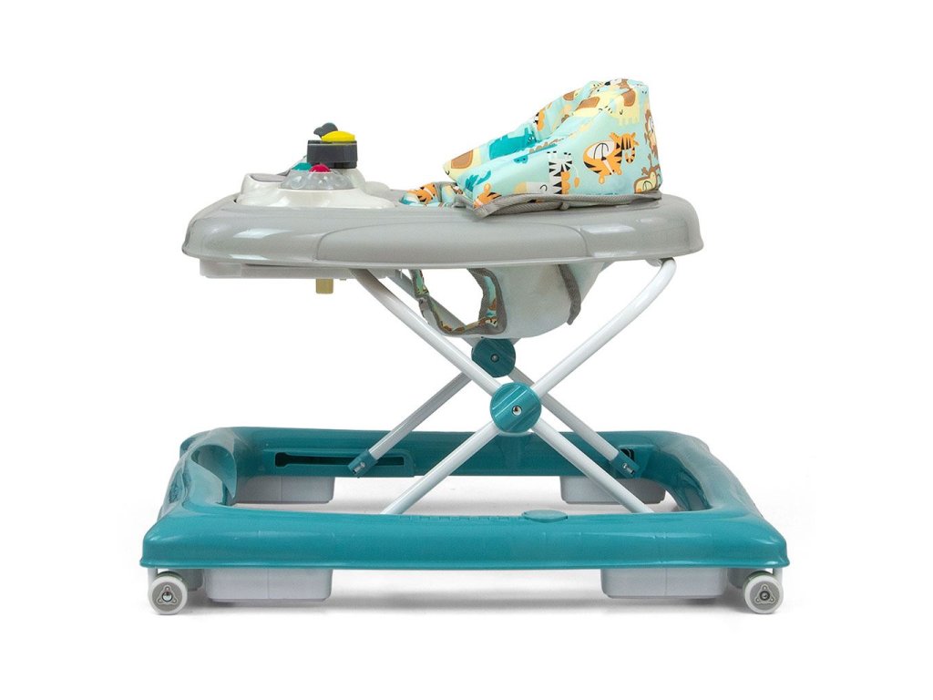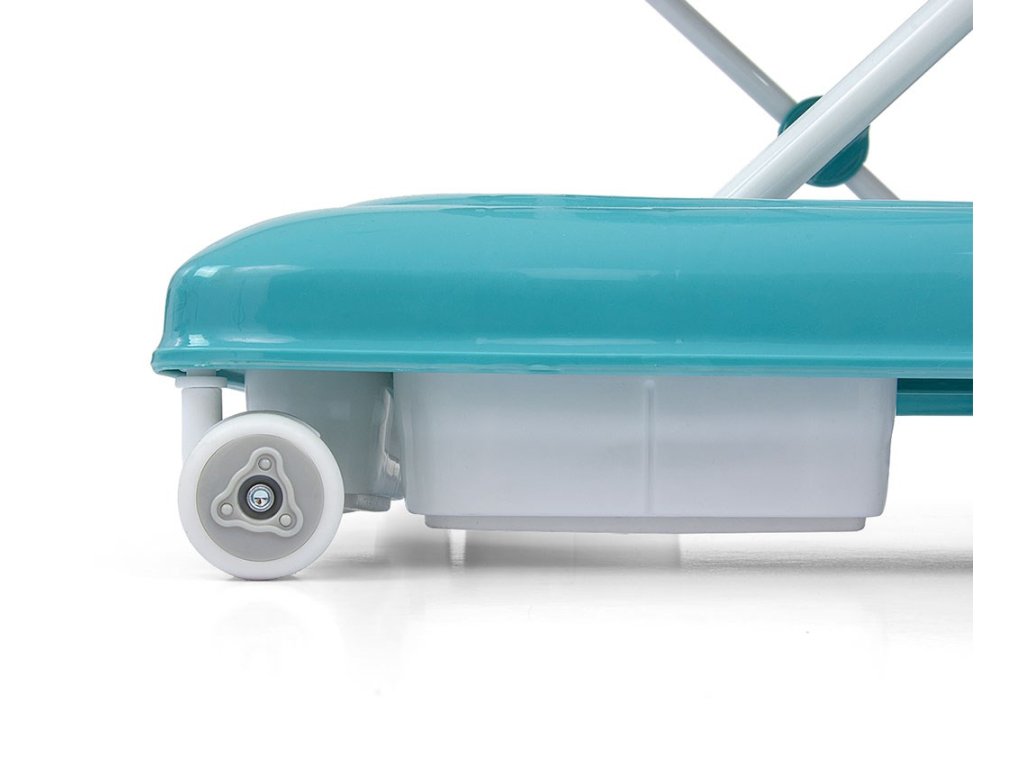 Štyri kvalitné otočné kolieska, ktoré nepoškriabu povrch, po ktorom sa pohybujú, zaistí voľnosť pohybu a osem gumových zarážok ochráni dieťa pred skĺznutím zo schodov alebo iných prekážok.