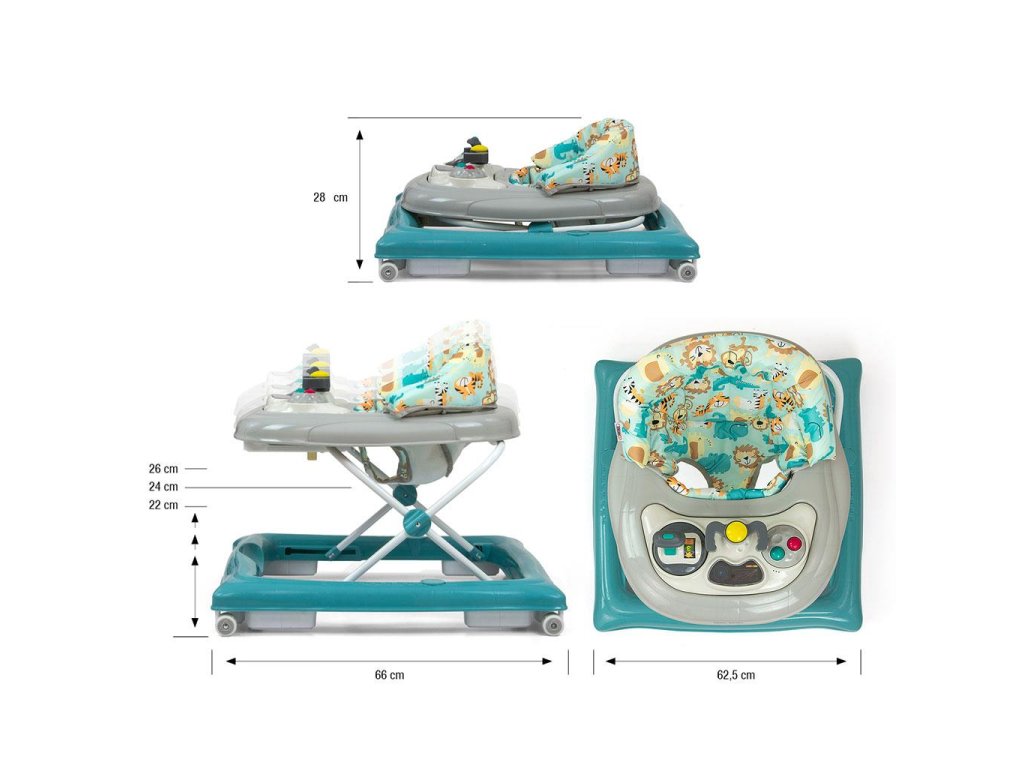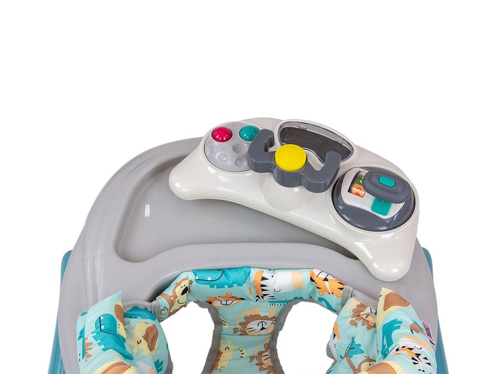 Výrobok má výukový panel, ktorý obsahuje množstvo prekvapení čakajúcich na malých prieskumníkov: svetielka, pískanie, melódie, hrkálka, tlačidlá a ďalšie pohyblivé prvky. Po sňatí panelu z podnosu chodítka poslúži ako samostatná hračka, napríklad ako spoločník na cesty, a doska poslúži ako hrací stolík.