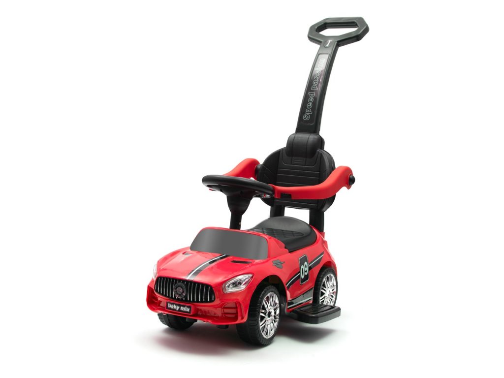 Auto Baby Mix RACER je skutočným zážitkom pre všetkých malých pretekárov. Dokonalé spracovanie a detaily, ako sú kolesá, svetlá alebo tvar karosérie, upútajú pozornosť každého a rýchlo sa stanú obľúbenou hračkou doma aj na prechádzke. Odrážadlo je vyrobené z kvalitných a odolných materiálov a je vybavený zvukovým panelom. Jazda pomáha rozvíjať motorické schopnosti dieťaťa a zaručuje veľa zábavy a radosti. Vďaka špeciálnej poistke na zadnej strane je váše dieťa chránené proti prevráteniu. Vodiaca tyč, opierky rúk a nôh sa dajú odňať a dieťa ho môže používať ako klasické odrážadlo.