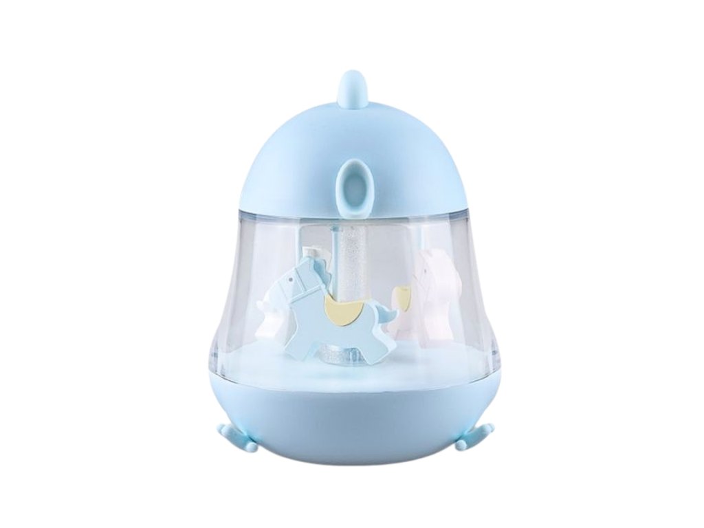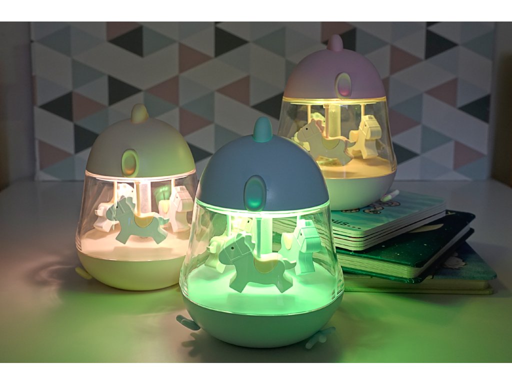 Detské svetielko s hudbou a kolotočom Modré Lampička, hracia skrinka a kolotoč v jednom Detské svetielko s hudbou a kolotočom dodá každej detskej izbe čarovný nádych. Ponúka jemné a príjemné osvetlenie, ktoré vytvára pokojnú atmosféru, kolotoč s koníkmi, ktoré sa pomaly točia v kruhu, zaujme pozornosť dieťatka a pomáha mu relaxovať. V spojení s príjemnou hudbou je to dokonalý nástroj na uspávanie malého drobca. Lampička poslúži aj ako svietiaca hračka, ktorá svojím zvukom, svetlom a pohybom stimuluje zmysly dieťaťa.Vlastnosti:-pútavý dizajn- kolotoč s koňmi- melódia hracej skrinky- hracia skrinka sa navíja ručne- svieti v 7 farbách- doba svietenia po úplnom nabití cca 12 h- režim spánku po 8 hodinách- nabíjanie cez micro-USB kábel (súčasťou balenia)- nezohrieva sa- ľahko sa čistíDodatočné parametre