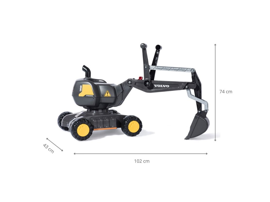 Je to ideálne vozidlo pre deti vo veku 3 až 5 rokov. Bager je inšpirovaný skutočnými stavebnými strojmi značky Volvo, čo z neho robí realistickú a vizuálne atraktívnu hračku pre deti. Má plne funkčné rameno bagra s lyžicou, čo umožňuje dieťaťu ovládať rameno pomocou páky. Rameno umožňuje kopať a prenášať piesok, zeminu alebo iné ľahké materiály, čo robí hru ešte zábavnejšou. Horná časť bagra sa môže otáčať o 360 stupňov, čo umožňuje jednoduché ovládanie a prácu na ihrisku v rôznych smeroch, ako skutočný bager. Podporuje kontrolu, jemnú motoriku a koordináciu ruka-oko. Bager je vybavený širokými kolesami a pevnou základňou, čo zaisťuje stabilitu počas používania. Dieťa môže bezpečne sedieť na bagri a ovládať pohyby stroja. Bager Rolly Digger Volvo vyniká nielen vysokou kvalitou spracovania a atraktívnym vzhľadom, ale aj trvanlivosťou. Je vyrobený z odolného materiálu a vydrží aj intenzívnu hru. Vďaka bagru Rolly Digger Volvo si deti môžu užívať hodiny zábavy na čerstvom vzduchu a rozvíjať svoju fantáziu. Či už samy, alebo s kamarátmi, toto vozidlo sa určite stane obľúbenou hračkou malých dobrodruhov. Tento jedinečný bager podporuje fyzický rozvoj dieťaťa, koordináciu, rovnováhu a rozvoj zmyslov, vrátane koncentrácie. Nezanedbateľnou výhodou pre dieťa je, že si rozvíja aj sociálne zručnosti prostredníctvom hry na role.