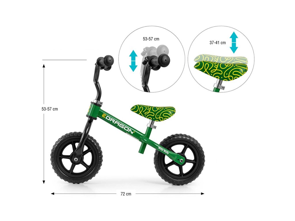 DRAGON rozvíja motoriku, silu nôh, rovnováhu a koordináciu, a pripravuje dieťa na prechod na bicykel bez pomocných koliesok.