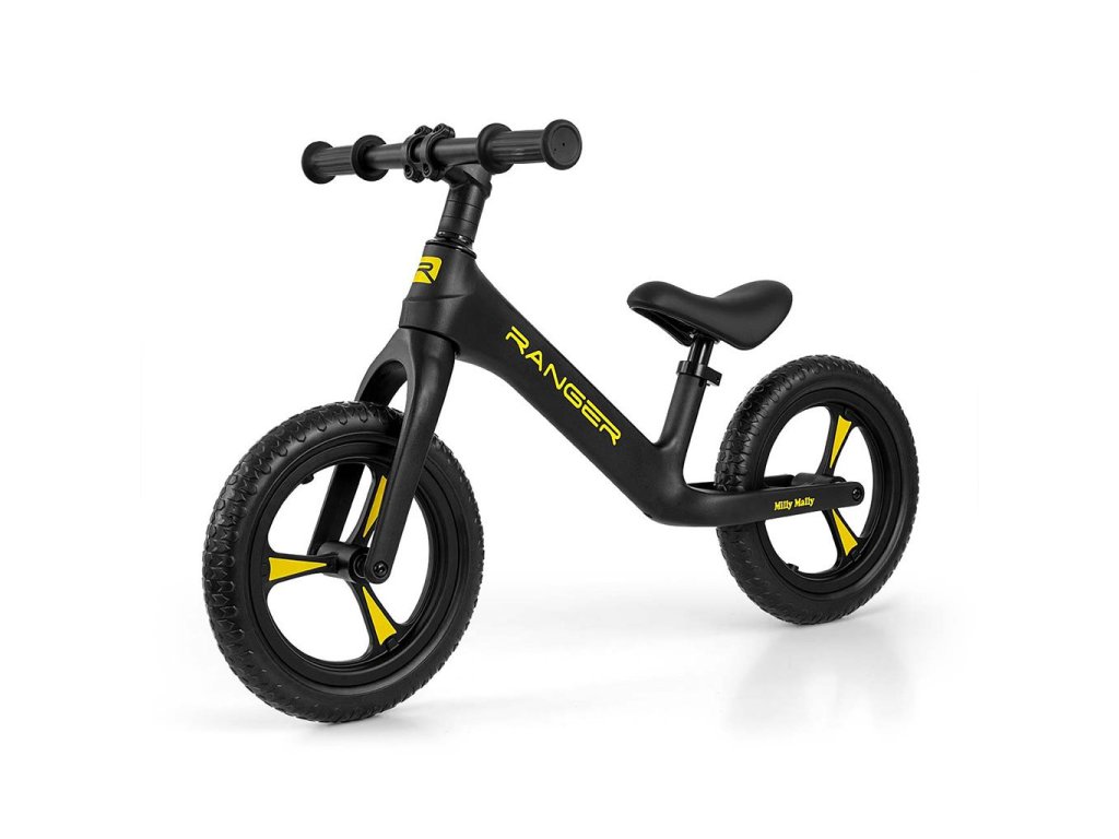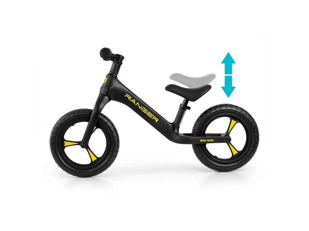 Odolná a vyrobená najnovšou technológiou EVA peny, 12" kolesá odolné proti prepichnutiu, ktoré nie je potrebné nafukovať, sú bezúdržbové. Ergonomické, výškovo nastaviteľné sedlo s mäkkou výplňou zaisťuje dieťaťu pohodlie pri jazde a rastie s dieťaťom. Kolo Ranger má riadidlá v guličkových ložiskách, rovnako kolesá s guličkovými ložiskami.Protišmykové rukoväte z mäkkej gumy zaisťujú pevné uchopenie a pohodlné vedenie.