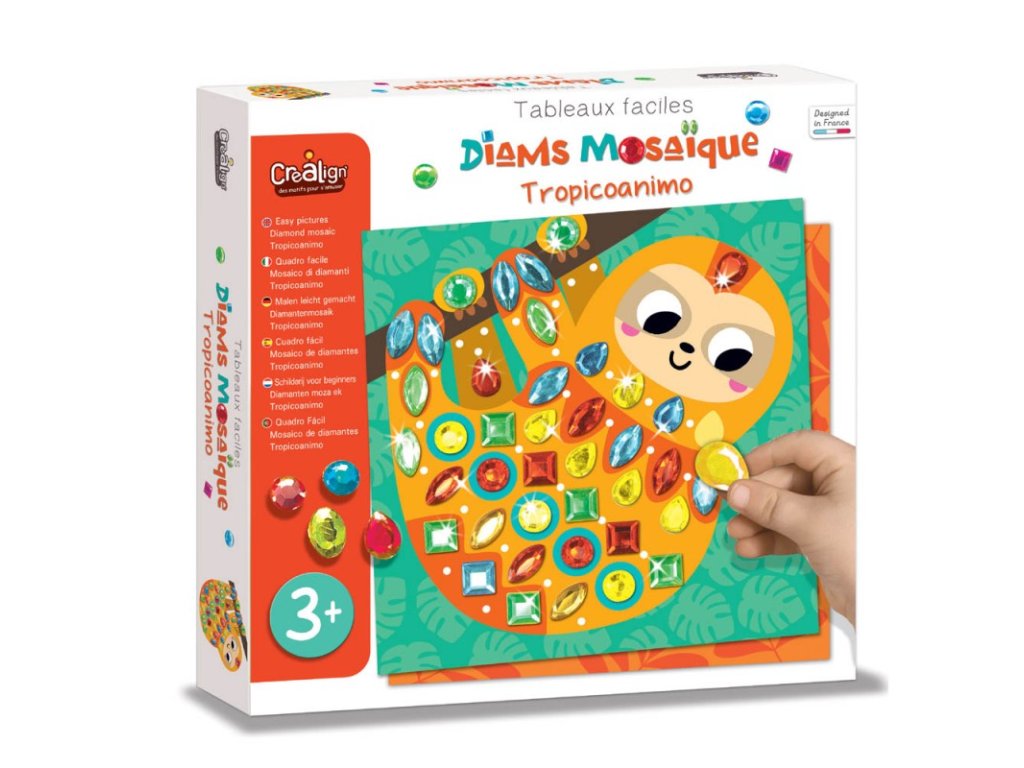Diamantová mozaika Tropické zvieratká 3+ Vytvor si rozkošné trblietavé obrázky! Nalepovacia diamantová mozaika Tropické zvieratká je úžasná kreatívna sada od francúzskej značky Crea Lign z radu Jednoduché obrázky vhodné už pre deti od 3 rokov. Obsahuje 6 obrázkov zvieratiek a 281 diamantových nálepiek. Vďaka nim si deti farebné zvieratká krásne vyzdobia. Nechýba ani 1 stojan na následné vystavenie obrázkov.Skvelé na rozvoj kreativity Diamantová mozaika podporuje rozvoj jemnej motoriky, šikovnosti aj kreativity. Produkt je vysoko kvalitný a bezpečný, rovnako ako všetky ostatné výrobky francúzskej značky Crea Lign. Jej cieľom je vyvíjať kreatívne potreby a hry, ktoré podporujú rozvoj deti a umožňujú každému nájsť to, čo ho baví.Dodatočné parametre