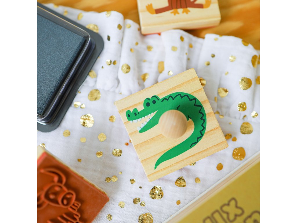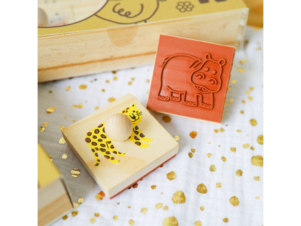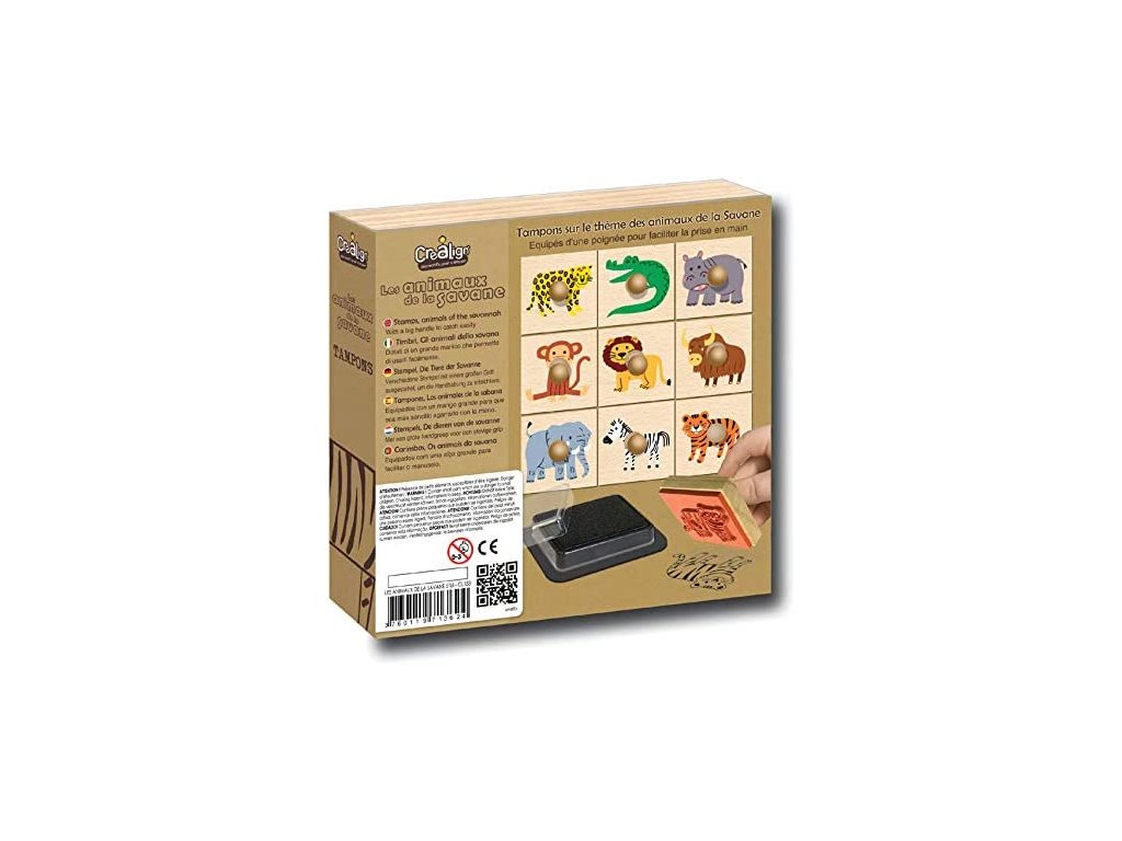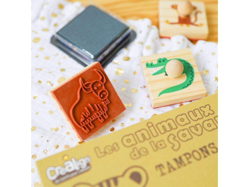 Drevené pečiatky s úchytkami Savana 9 ks Vytvor si svoje vlastné safari! Sada pečiatok pre deti od od francúzskej značky Crea Lign obsahuje 9 veľkých drevených pečiatok s držiakmi. Vďaka tomu sa pečiatky s roztomilými zvieratkami zo savany deťom dobre držia a sú tak vhodné už približne od 3 rokov. V balení je aj atramentový pečiatkovací vankúšik s čiernou farbou. Deti tak môžu hneď tvoriť!S Crea Lign sa deti učia nové umelecké techniky Pečiatky pre deti a práca s nimi podporuje rozvoj jemnej motoriky, starostlivosti, predstavivosti i kreativity. Produkt je vysoko kvalitný a bezpečný, rovnako ako všetky ostatné výrobky francúzskej značky Crea Lign.Dodatočné parametre