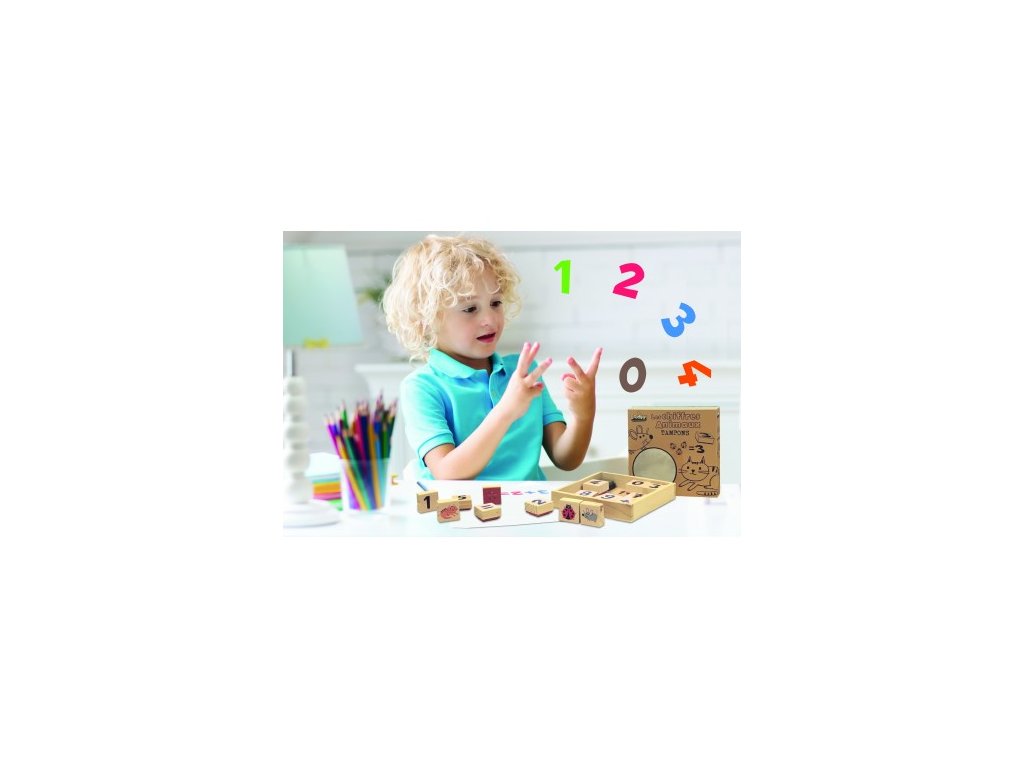 Drevené pečiatky Zvieratá a čísla 15 ks