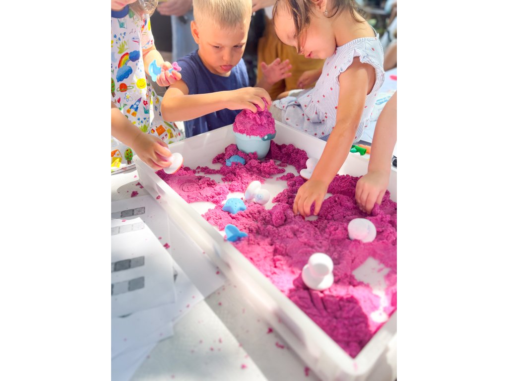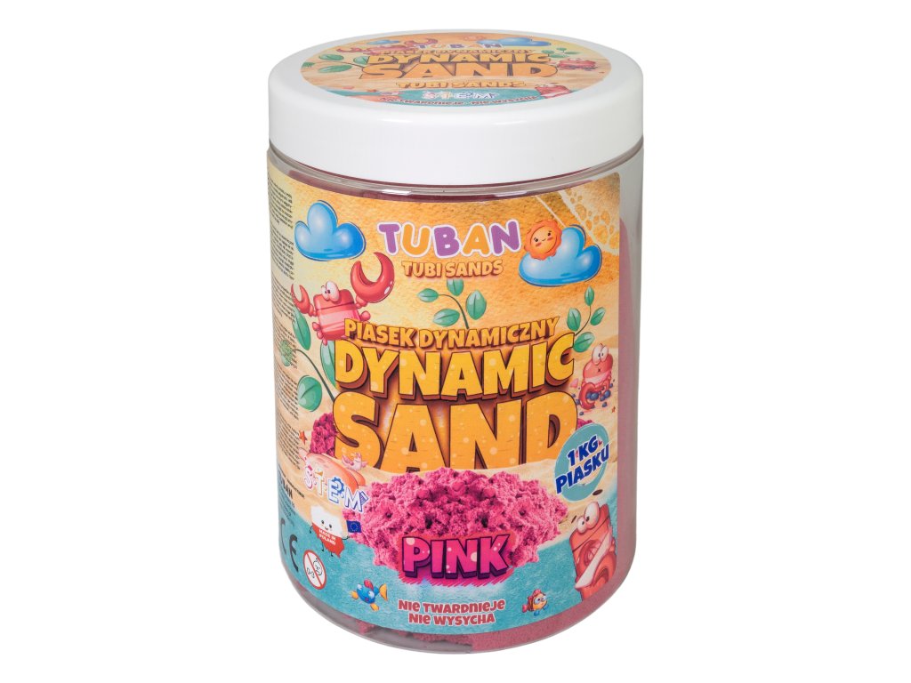 Dynamický piesok Ružový 1 kg Moderná alternatíva k tradičnému piesku Dynamický piesok má schopnosť zachovať si tvar a štruktúru bez použitia vody. Je to ideálne riešenie pre deti, ktoré milujú hravú kreativitu, ale aj pre rodičov, ktorí hľadajú bezpečnú a čistú alternatívu k tradičnému piesku. Dynamický piesok sa ľahko tvaruje, nesype sa a nevysychá, takže sa s ním môžete hrať opakovane po dlhú dobu. Je ideálny na rozvoj jemnej motoriky a podporu detskej kreativity. Balenie obsahuje 1 kilogram dynamického piesku ružovej farby.Odborník na detskú zábavu Tuban ponúka široký výber kvalitného dynamického piesku a rôznych doplnkov. Dynamický piesok je vyrobený z bezpečných a netoxických materiálov, ktoré sú šetrné k životnému prostrediu, neobsahujú borax.Dodatočné parametre