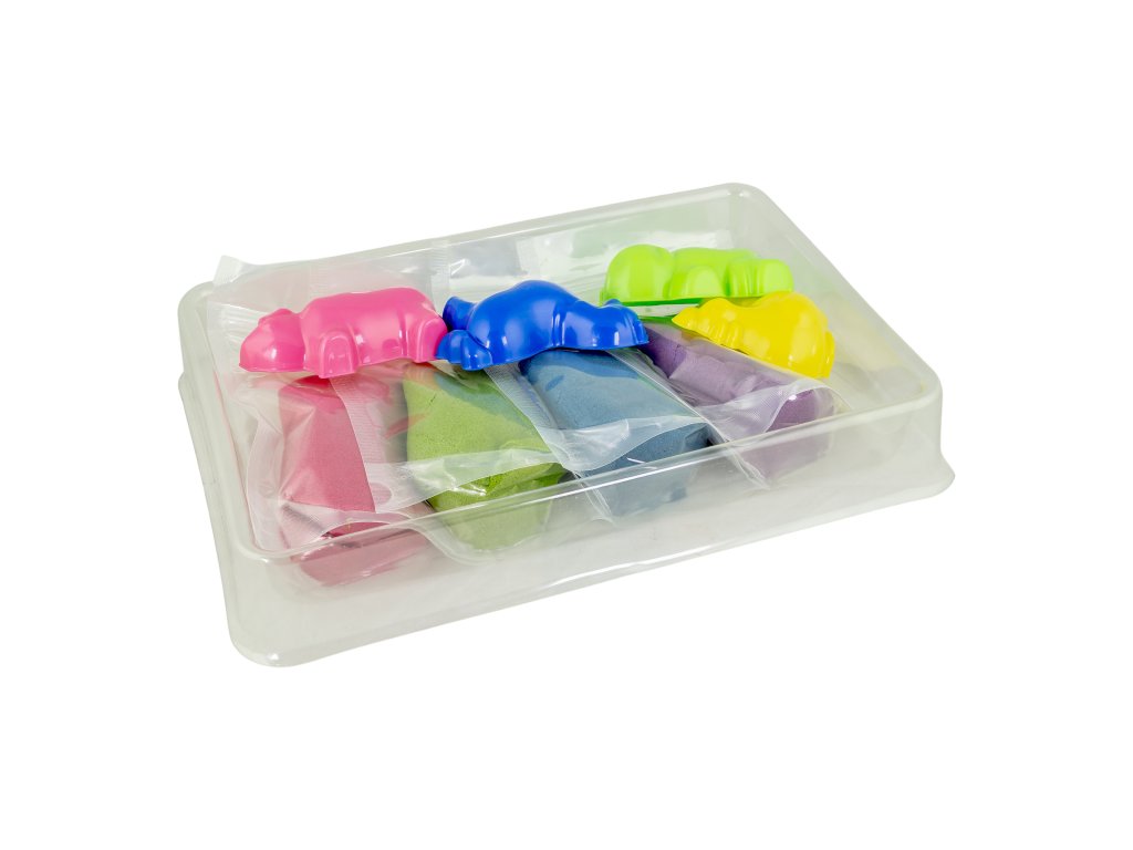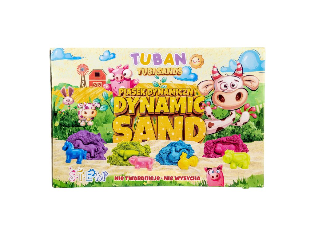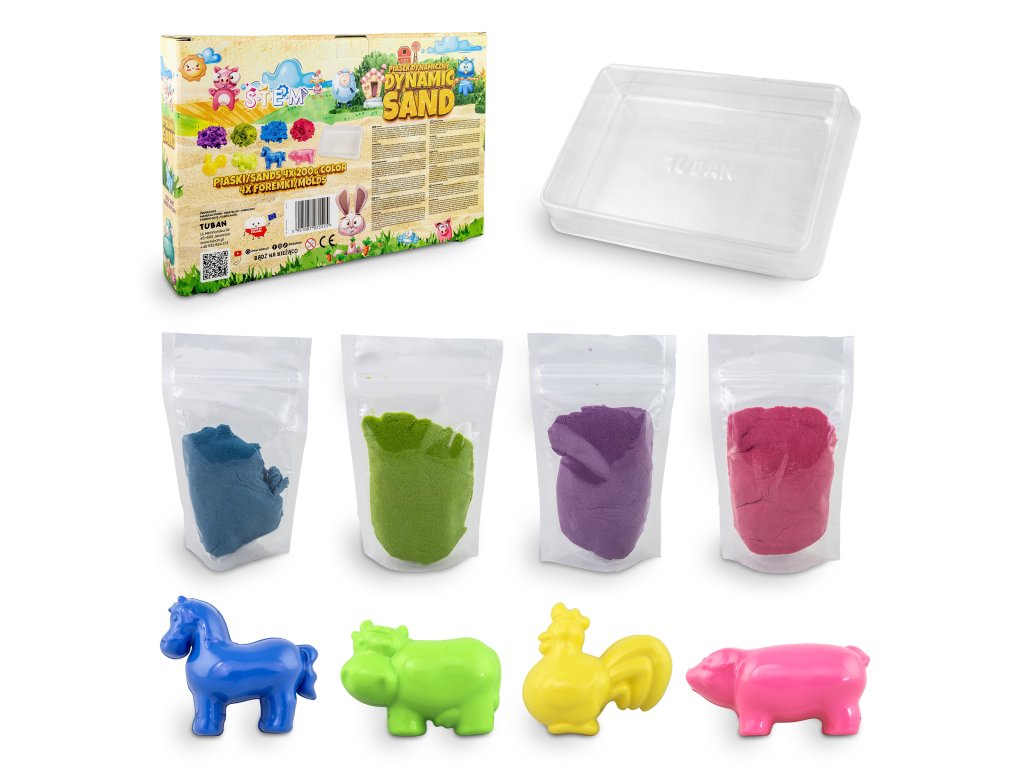 Dynamický piesok Sada Farma Sada obsahuje až 4 farby piesku Inovatívny produkt navrhnutý špeciálne pre deti. Dynamický piesok má schopnosť zachovať si tvar a štruktúru bez použitia vody. Je to ideálne riešenie pre deti, ktoré milujú hravú kreativitu, ale aj pre rodičov, ktorí hľadajú bezpečnú a čistú alternatívu k tradičnému piesku. Dynamický piesok sa ľahko tvaruje, nesype sa a nevysychá, takže sa s ním môžete hrať opakovane po dlhú dobu. Je ideálny na rozvoj jemnej motoriky a podporu detskej kreativity.Sada obsahuje:misu,4 x 200 g piesku (ružový, modrý, zelený, fialový),4 formičky.Odborník na detskú zábavu Tuban ponúka široký výber kvalitného dynamického piesku a rôznych doplnkov. Dynamický piesok je vyrobený z bezpečných a netoxických materiálov, ktoré sú šetrné k životnému prostrediu, neobsahujú borax.Dodatočné parametre