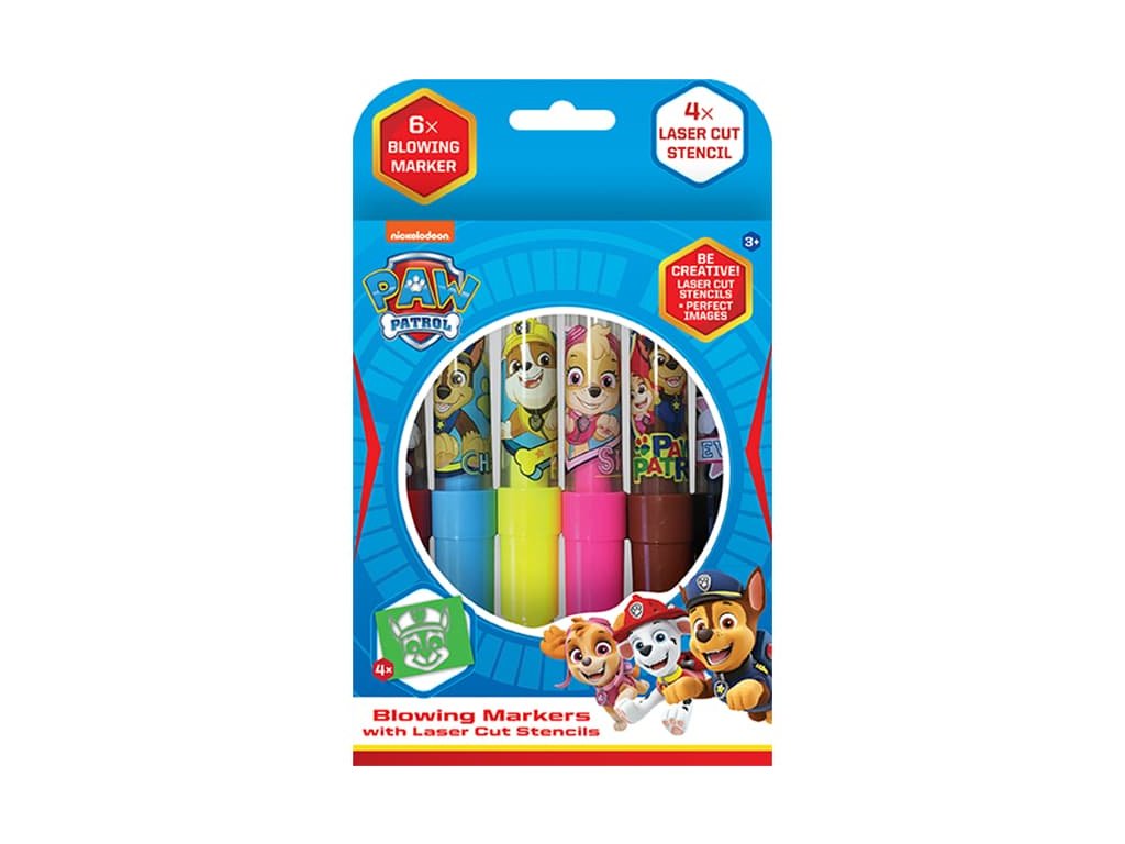 Fúkacie fixky Labková patrola Blue Farebné fixky s hrdinami z Labkovej patroly Zažite zábavu a tvorivosť s obľúbenými hrdinami z Labkovej patroly! Táto jedinečná sada fúkacích fixiek obsahuje 6 farebných fixiek s motívom postavičiek a 4 farebné šablóny s obľúbenými scénkami. Deti si môžu vytvárať vlastné obrázky, rozvíjať jemnú motoriku a kreativitu. Vhodné pre malých umelcov od 3 rokov.Dodatočné parametre