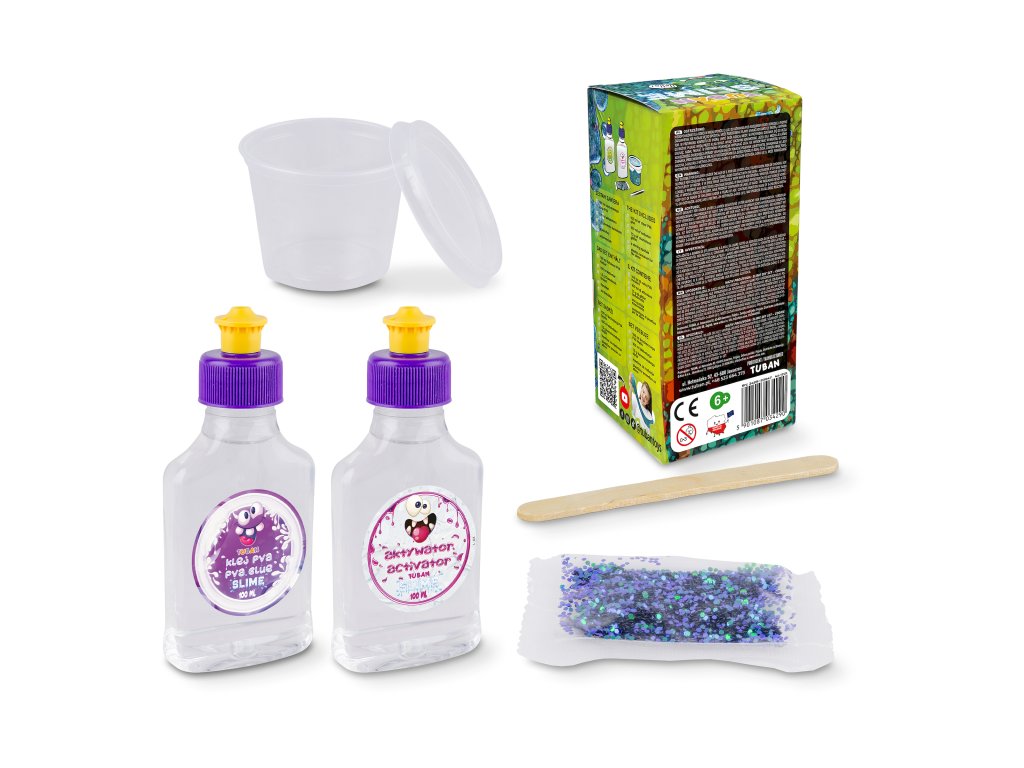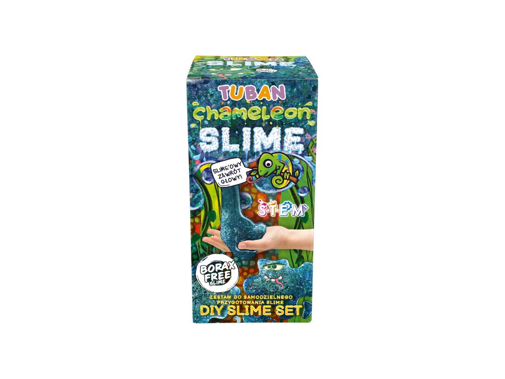 DIY Slime Kaméleon Slime készítő készletHűsítse el gyermekeit varázslatos, színváltó slime-malEgy nagyszerű tevékenység kísérletező kedvű gyerekeknek. Ebben a készletben mindent megtalálsz, ami a minőségi slime elkészítéséhez szükséges. Az ásványi csillámok különleges keverékének köszönhetően a slime számos rendkívüli árnyalatban fog megjelenni. A színek csillognak és varázslatosan változnak, ahogy a slime-ot gyúrjuk. A slime-mal való játék ideális a finommotoros készségek és az érzékszervi érzékelés fejlesztésére, és ösztönzi a gyermekek kreativitását.A készlet tartalmazza:100 ml türkizkék PVA ragasztó,100 ml aktivátor,2 g ásványi csillám,spatula,edény.Szórakoztató, tanulságos és pihentetőA gyermekek számára a slime manipulálása megnyugtató és pihentető lehet. Remek módja a kikapcsolódásnak és a stressz csökkentésének egy fárasztó nap után. Fedezze fel az összes DIY slime-ot és kész Jiggly Slime-ot különböző színekben és illatokban.a Slime biztonságos és nem mérgező anyagokból készül, amelyek környezetbarátok, bóraxmentesek. Játék után javasoljuk, hogy a slime-ot a mellékelt tartályban tárolja és szorosan zárja le.Az érzékszervi játék lehetővé teszi a gyermekek számára, hogy érzékszerveiken keresztül fedezzék fel az őket körülvevő világotA különböző textúrákkal, színekkel és illatokkal való játék nemcsak az érzékszervi érzékelésüket stimulálja, hanem elősegíti a kognitív fejlődésüket, a finommotoros készségeiket és az érzelmi intelligenciájukat is. A Tuban termékekkel a gyerekek felfedezhetik a különböző érzékszervi ingereket, és új tanulási és szórakozási lehetőségeket fedezhetnek fel.Kiegészítő paraméterek