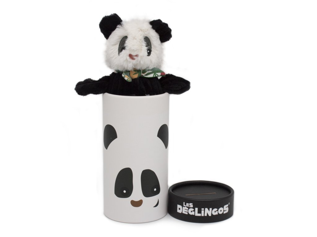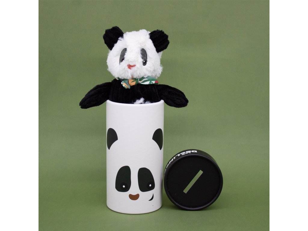 Plüss Panda 22 cm-es ajándékdobozbanAlvó és játszó játékA Les Déglingos kis plüss Panda ajándékdobozba csomagolva ideális ajándék a baba születése alkalmából. A játék puha plüssből készült, alkalmas a kiságyba alvásra és biztonságos játékra a babák számára. Hossza 22 cm.Vicces és aranyos plüssállatokA Les Déglingos egy csapat pajtás, erős jellegzetes vonásokkal és jellegzetes megjelenéssel. Felismerheted őket jellegzetes kordbársony, zsákvászon és puha plüss anyaguknak köszönhetően. A széles választékban biztosan találsz egyet, amit szeretni fogsz.Kiegészítő paraméterek