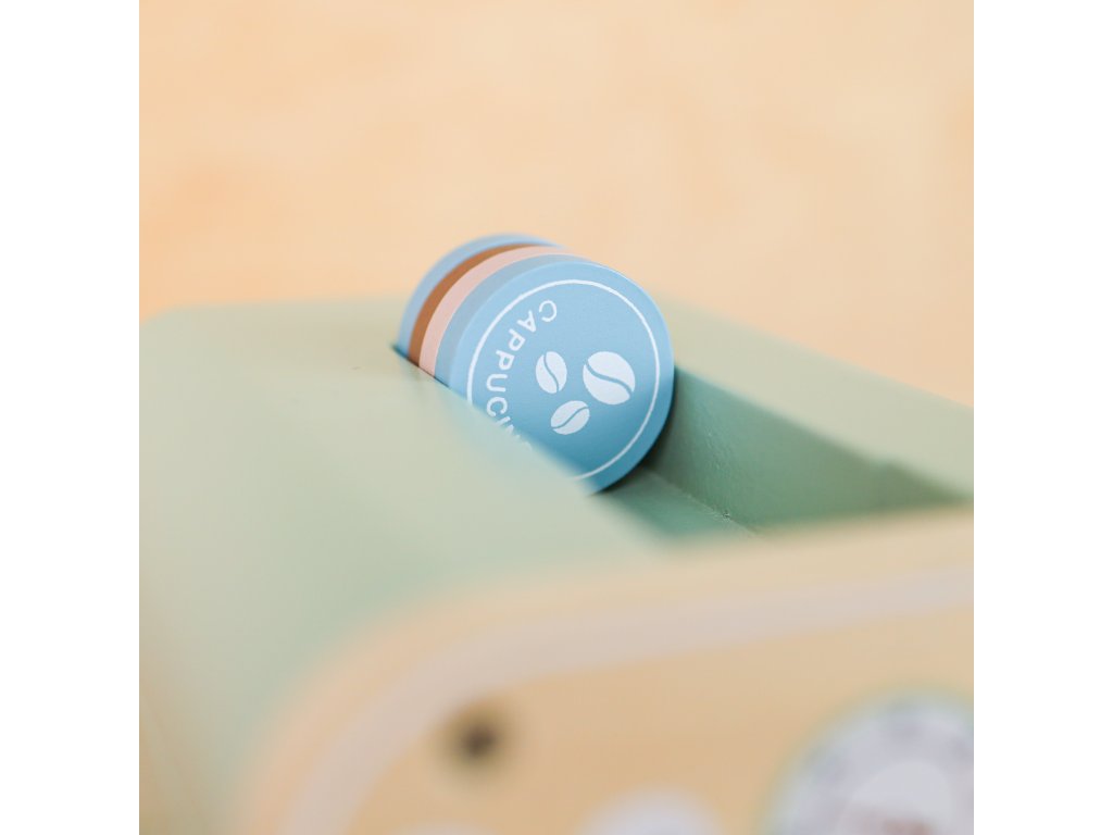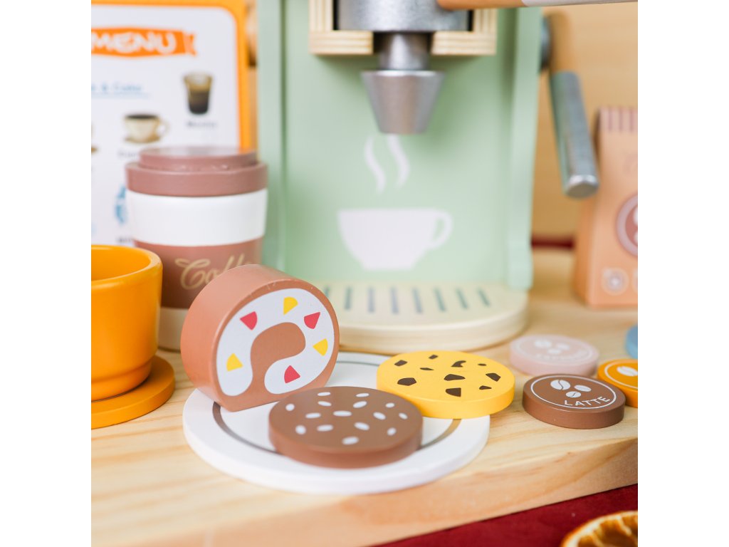 Kávovar s príslušenstvom Pastel Dokonalá hračka na prípravu kávy Neprehliadnuteľný drevený kávovar pre deti v pastelových farbách od Tooky Toy je skvelou hračkou na rolové hry na dospelých aj profesie. Drevený kávovar sa stane jedinečným doplnkom detskej kuchynky a dá sa využiť pri hre na prípravu raňajok či kaviareň. Okrem kávovaru má ďalších 18 dielikov dreveného príslušenstva, ako sú šálky na kávu, káva, mlieko, zákusky aj raňajkové menu. Kávovar má niekoľko mechanických prvkov, aby hra deti ešte viac bavila.Deti si rozvíjajú sociálne zručnosti Detský kávovar z dreva v pastelových farbách s príslušenstvom pomáha deťom vďaka hre na dospelých zlepšovať sa v sociálnych zručnostiach a komunikácii. Deti sú pri hre kreatívne a získavajú kladný vzťah k príprave a servírovaniu jedla. Drevené hračky pre deti Tooky Toy sú vyrobené z pevného, dobre opracovaného dreva z udržateľných zdrojov a sú natreté netoxickými farbami a lakom. Sada je skvelým narodeninovým darčekom pre deti.Dodatočné parametre