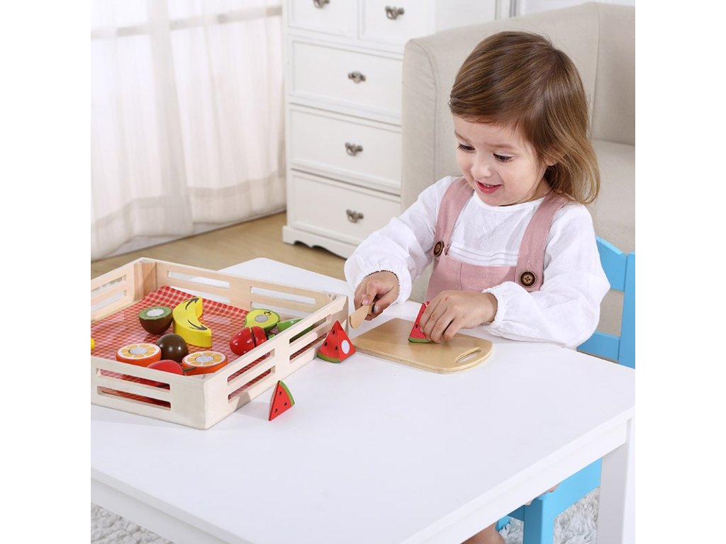 Krájanie Ovocie v debničke Pripravíme zdravé jedlo! Drevené potraviny na suchý zips vhodné pre každého malého kuchára. Súčasťou je nožík na na krájanie. Deti si pri hre cvičia jemnú motoriku Učia sa tiež hrať sa samostatne, rozvíjajú si slovnú zásobu, získavajú sebavedomie, získavajú kladný vzťah k jedlu a varenie.Dodatočné parametre