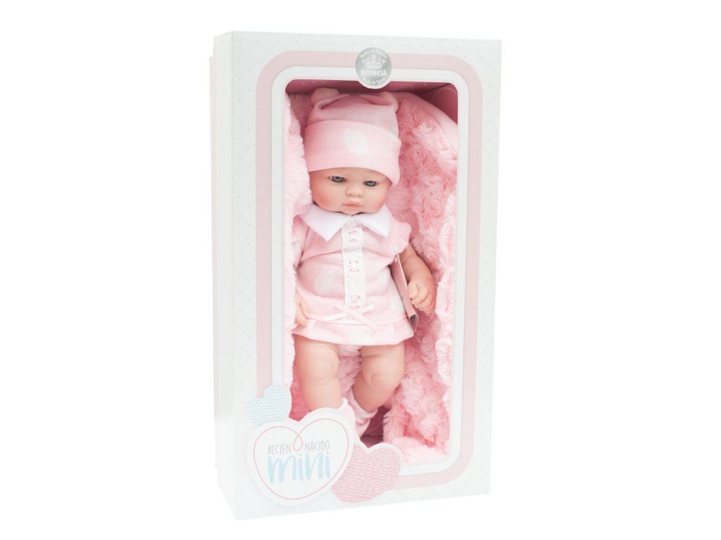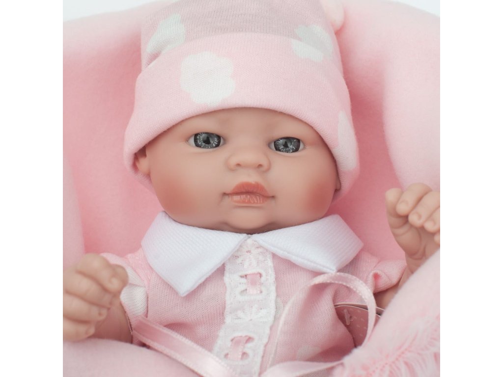 Luxusná španielska detská bábika-bábätko Anička. Bábika má vinylové telíčko, ručičky aj nožičky. Má milú tváričku, ktorá vyzerá ako naozajstné bábätko. Faldíky na ručičkách, nožičkách a brušku ešte viac pripomínajú novorodenca. Bábika má krásne sivé kukadlá, ružové pery, ručičky a nožičky sú pohyblivé v kĺboch. Súčasťou je roztomilý pletený ružový overal s mašličkou, pletená čiapočka, ponožky a krásna pletená zavinovačka. Oblečenie sa dá vyzliecť. Telíčko bábätka má jemnú vôňu po vanilke. Dĺžka bábiky je cca 28 cm. Vhodné pre deti od 3 rokov. Pri výrobe sú používané výhradne kvalitné materiály.