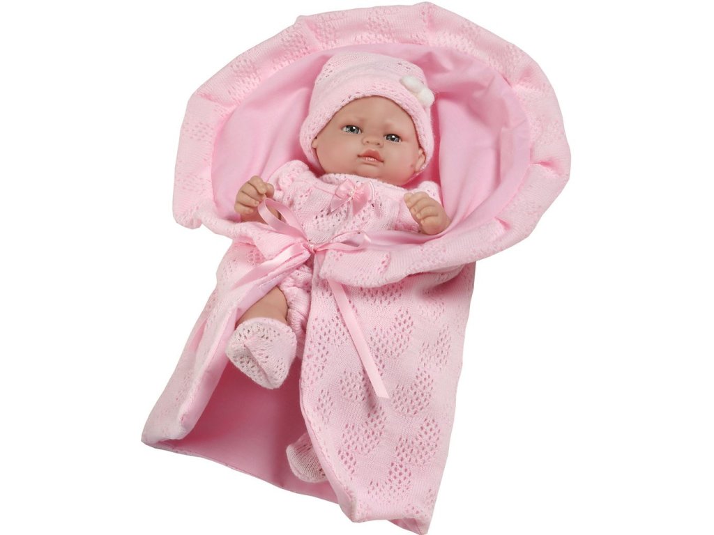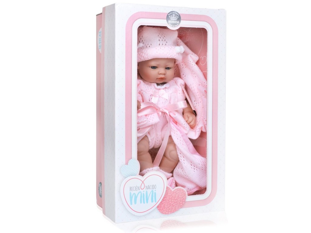 Luxusná španielska detská bábika-bábätko Berbesa Valentina. Bábika má vinylové telíčko, ručičky aj nožičky. Valentina má milú tváričku, ktorá vyzerá ako naozajstné bábätko. Faldíky na ručičkách, nožičkách a brušku ešte viac pripomínajú novorodenca. Bábika má krásne modré kukadlá, ružové pery, ručičky a nožičky sú pohyblivé v kĺboch. Súčasťou je roztomilý pletený ružový overal s mašličkou, pletená čiapočka, ponožky a krásna pletená zavinovačka. Oblečenie sa dá vyzliecť. Telíčko bábätka má jemnú vôňu po vanilke. Dĺžka bábiky je cca 28 cm. Vhodné pre deti od 3 rokov. Pri výrobe sú používané výhradne kvalitné materiály.Dodatočné parametre