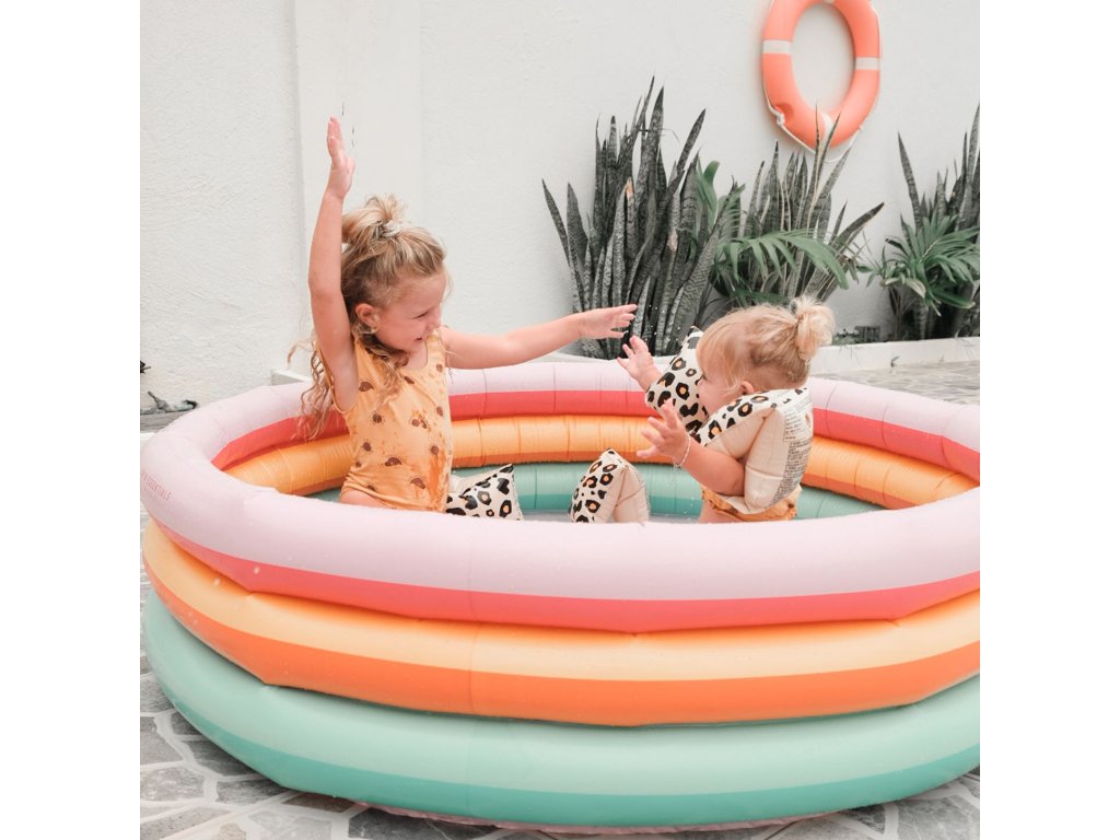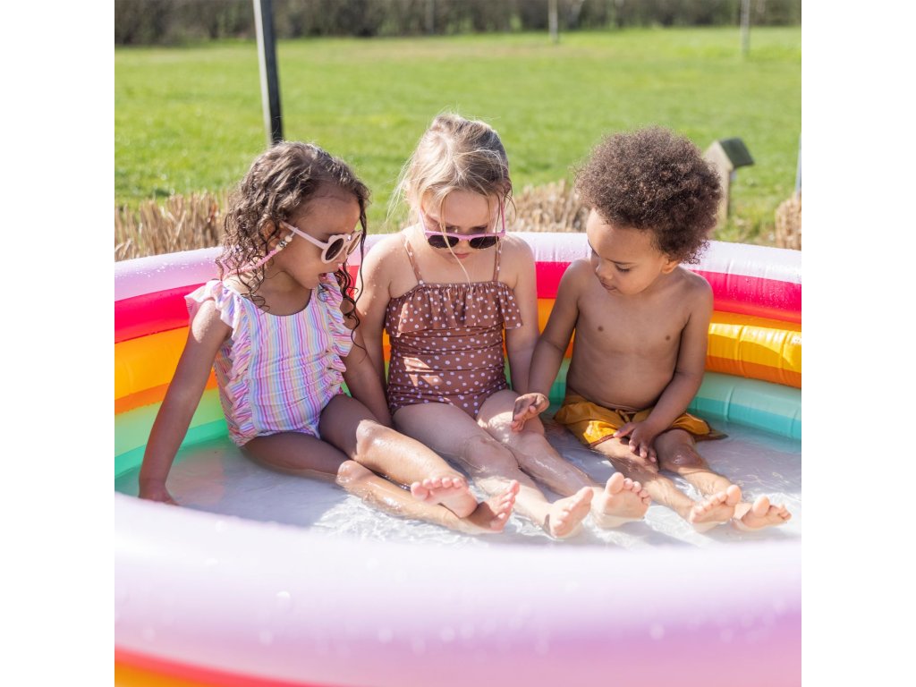 Nafukovací bazén pre deti Triocolour 150 cm Vaše deti nebudú chcieť z vody! Detský nafukovací bazén Tricolour vo výrazných farbách dúhy od Swim Essentials je svojou veľkosťou určený približne pre deti od 3 rokov. Jeho priemer je 150 cm a zmestí sa do neho až 150 litrov vody. Detičkám tak poskytuje dostatočný priestor na vodné radovánky a letné osvieženie. Môžu si do neho nahádzať množstvo hračiek do vody a zábava sa môže začať. Dokonalý nafukovací bazén na záhradu Bazén má 3 nafukovacie komory a deťom sa bude veľmi páčiť. Vďaka svojmu výnimočnému vzhľadu sa bude skvele vynímať vo vašej záhrade alebo na terase. Radi si v ňom schladíte nohy aj vy! Veľkosť bazéna je 150 x 150 x 30cm. Kvalitný detský nafukovací bazén Tricolour je skvelý na letnú zábavu Prémiová holandská značka Swim Essentials sa pri všetkých svojich výrobkoch zameriava na vysokú kvalitu, funkčnosť a neopozeraný štýl. Veľké okrúhle nafukovacie bazény pre deti sú preto vyrobené z odolného PVC. Vďaka tomu sú veľmi pevné a veľa vydržia. Značka taktiež každý rok prináša nové špičkové designy, na ktorých si dáva veľmi záležať. Balenie bazénika je vyrobené z recyklovaného kartónu a nájdete v ňom aj jeden set na opravu prípadných dier. Nechýba ani bezpečnostné testovanie hračiek EN-71.Dodatočné parametre