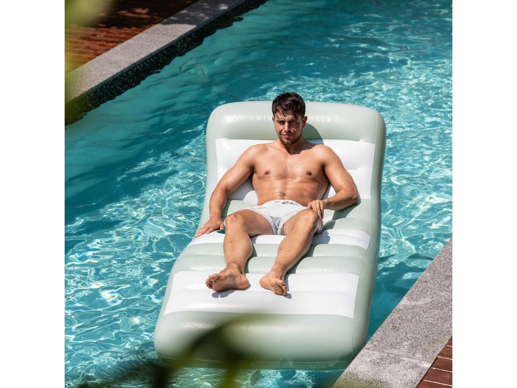 Nafukovacie kreslo Luxe Lounge Užite si pohupovanie na vodnej hladine! Oddýchnite si vďaka nafukovaciemu kreslu Luxe Lounge od Swim Essentials s retro bielo-zelenými pruhmi! Na vode sa budete dokonale vznášať bez toho, aby ste sa museli nejako namáhať. Vďaka svojej pevnej konštrukcii so 4 nafukovacími komorami a veľkosťou 180 x 99 cm toto originálne nafukovacie lehátko na vode krásne drží bez toho, aby sa prevrátilo.Pruhované nafukovacie kreslo je skvelé na leňošenie v bazéne Prémiová holandská značka Swim Essentials sa pri všetkých svojich výrobkoch zameriava na vysokú kvalitu, funkčnosť a neopozeraný štýl. Aj toto nafukovacie lehátko Luxe Lounge je vyrobené z pevného a odolného PVC. Značka tiež každý rok prináša nové špičkové designy, na ktorých si dáva veľmi záležať. Súčasťou balenia je aj set na opravu prípadných dier.Dodatočné parametre