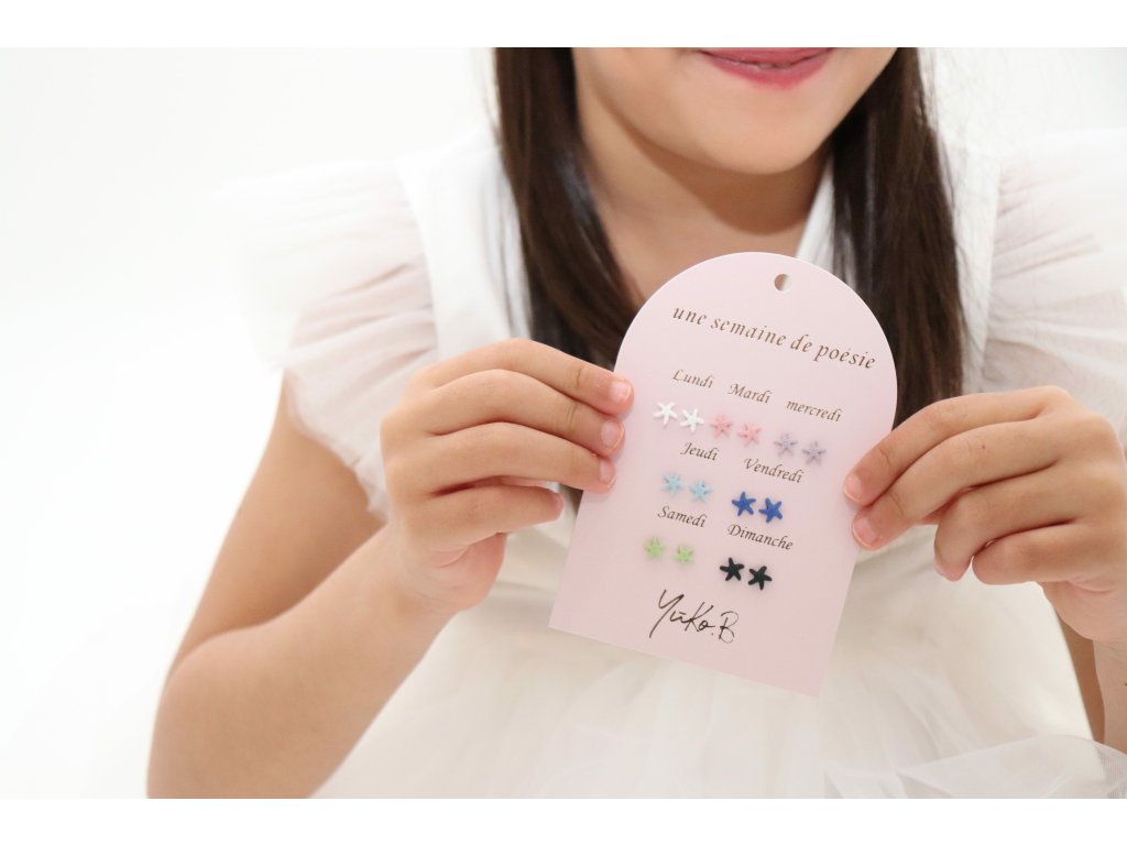 Náušnice na každý deň Hviezdice 7 párov Meň farbu náušníc každý deň! Náušnice Hviezdice v darčekovom balení od francúzskej značky Yuko B. sa stanú jedinečným doplnkom pre deti i dospelých. Všetkých 7 párov náušníc nájdete v jednej darčekovej sade. Náušnice sú vhodné ako malý darček pre všetkých, ktorí milujú byť zladení do posledného detailu.Náušnice Hviezdice z bezpečných materiálov 7 párov náušníc je vyrobených z keramiky a nerezovej ocele, takže neobsahujú žiadne nebezpečné látky a nespôsobujú alergie. Plastický keramický povrch zaisťuje jedinečný vzhľad. Dizajny Yuko B. kombinujú francúzske aj svetové trendy. Dôležitá je pre značku aj kvalita a minimálny dopad na životné prostredie.Dodatočné parametre