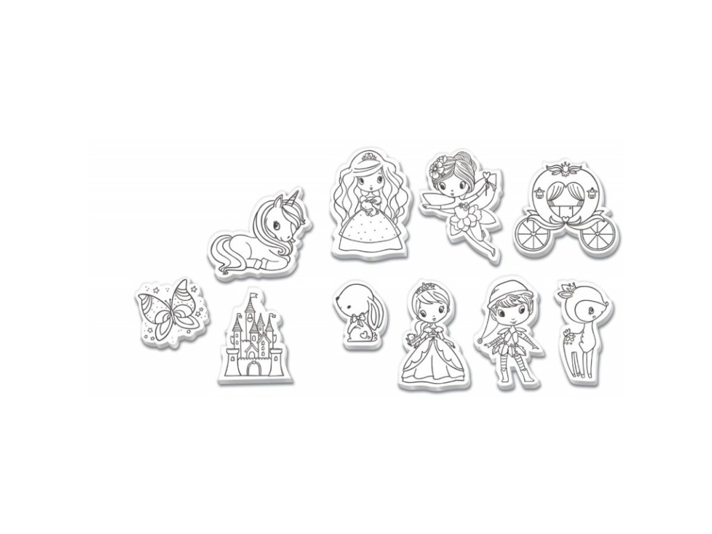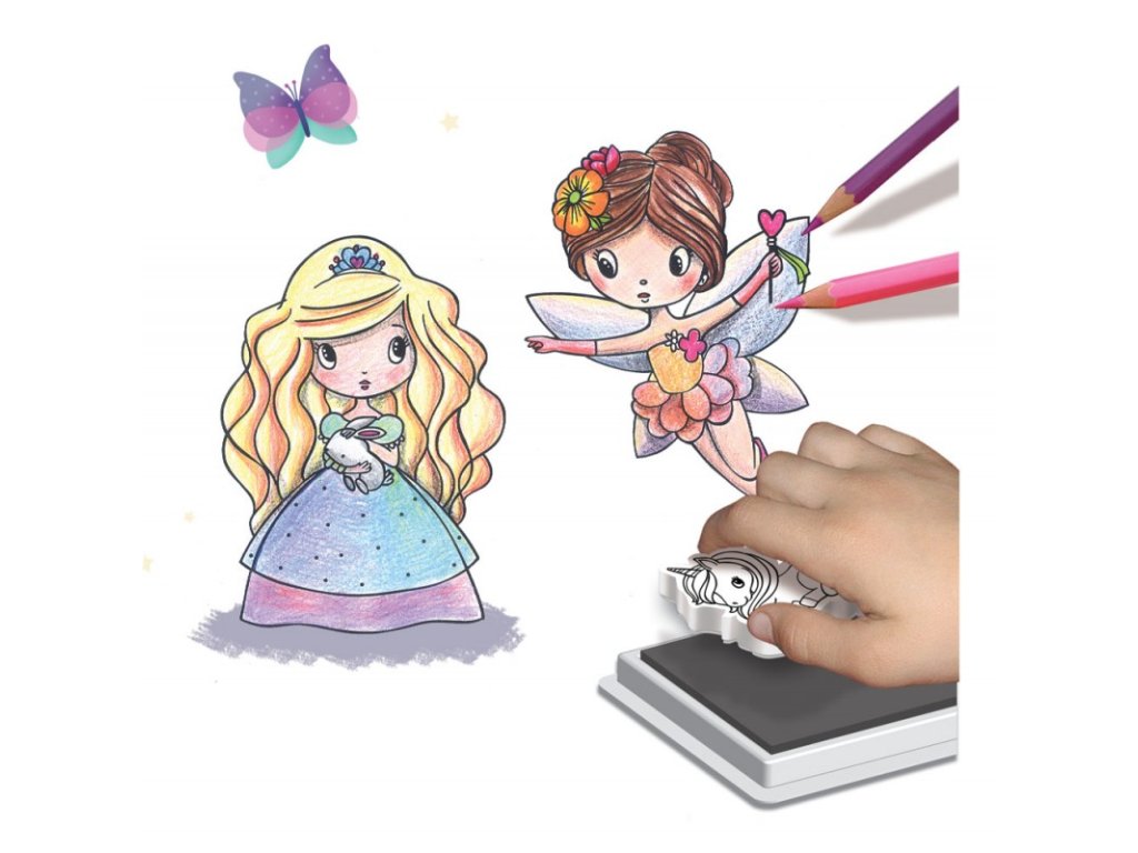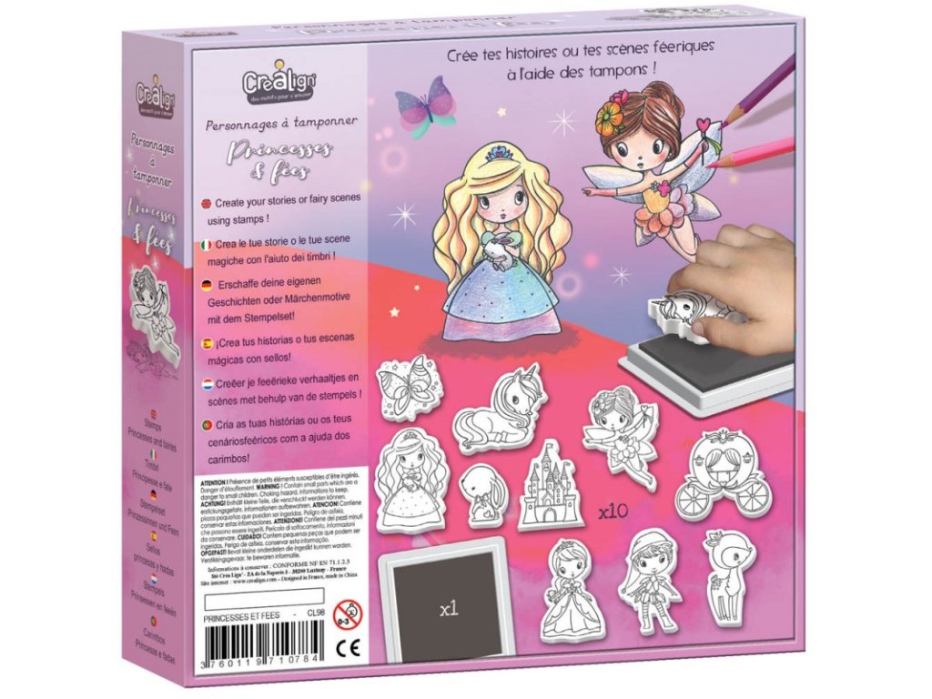 Penové pečiatky Princezné a víly Vymysli si vlastný rozprávkový príbeh! Sada pečiatok pre deti od od francúzskej značky Crea Lign obsahuje 10 veľkých penových pečiatok s princeznami, vílami a ďalšími rozprávkovými motívmi. Deti si vďaka nim tak môžu vymyslieť svoj vlastný kreslený rozprávkový príbeh. Pečiatky odtlačia a obrysy následne vyfarbia podľa vlastnej predstavivosti. V balení je aj atramentový pečiatkovací vankúšik s čiernou farbou. Deti tak môžu hneď tvoriť!S Crea Lign sa deti učia nové umelecké techniky Pečiatky pre deti a práca s nimi podporuje rozvoj jemnej motoriky, starostlivosti, predstavivosti i kreativity. Produkt je vysoko kvalitný a bezpečný, rovnako ako všetky ostatné výrobky francúzskej značky Crea Lign.Dodatočné parametre