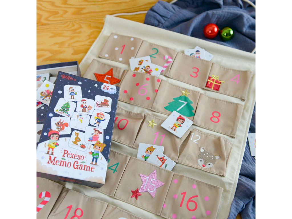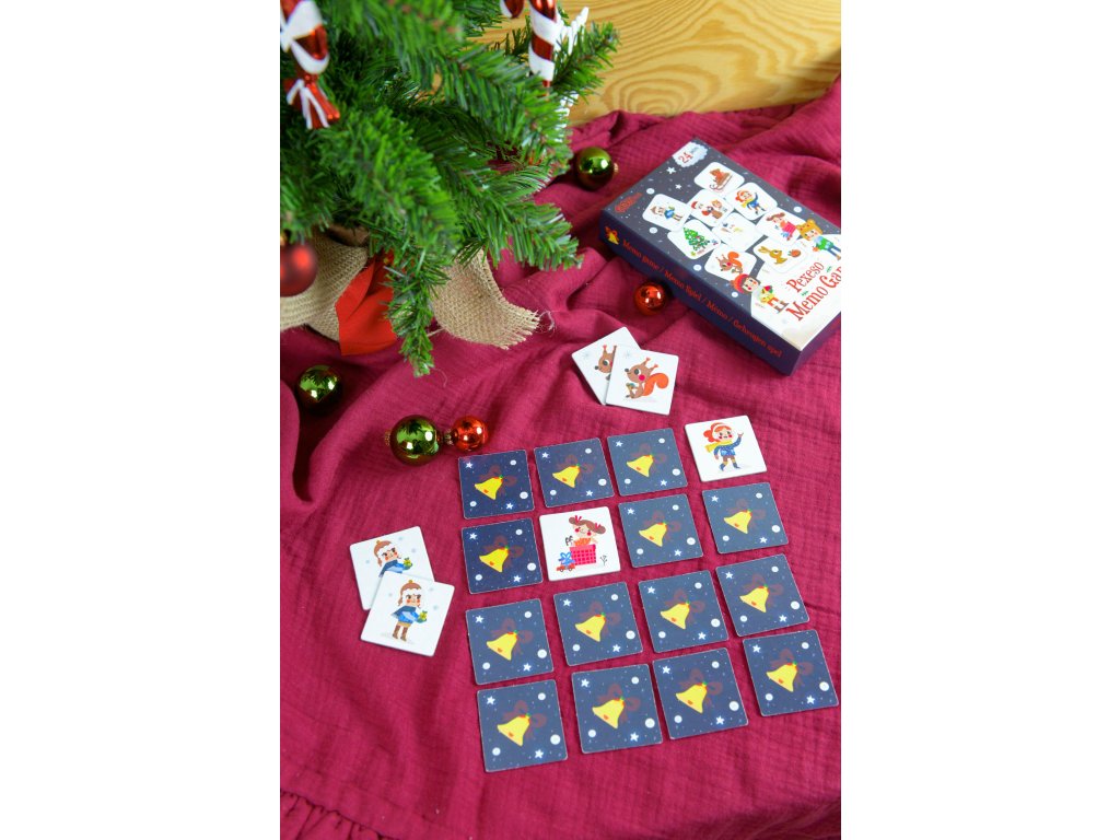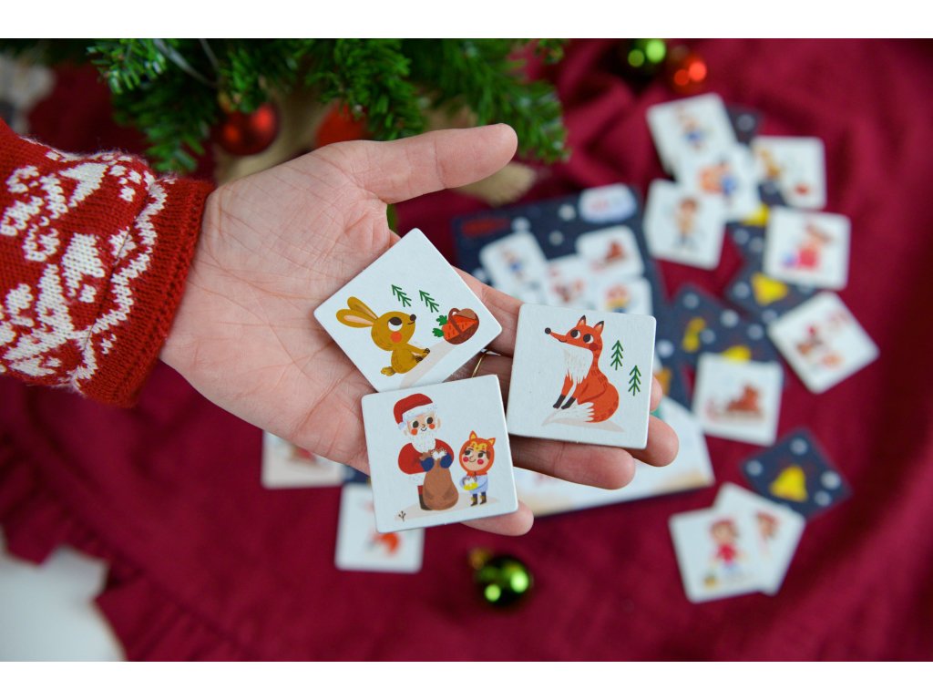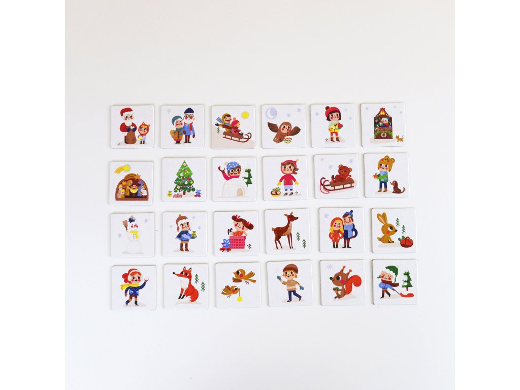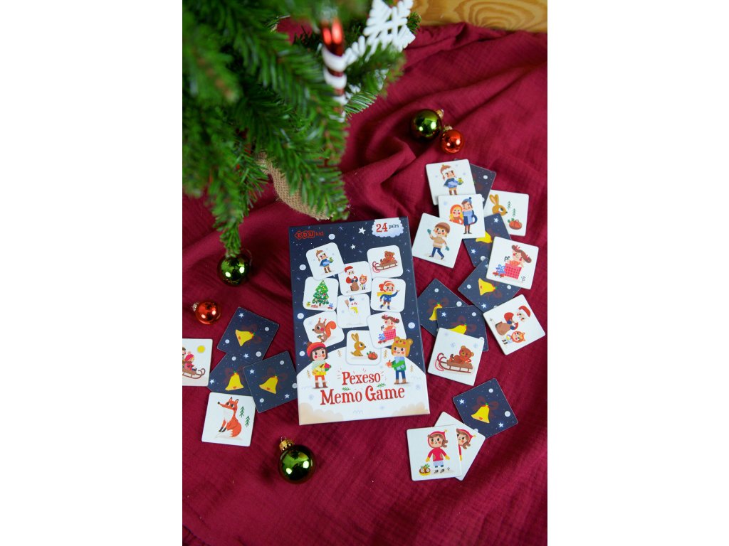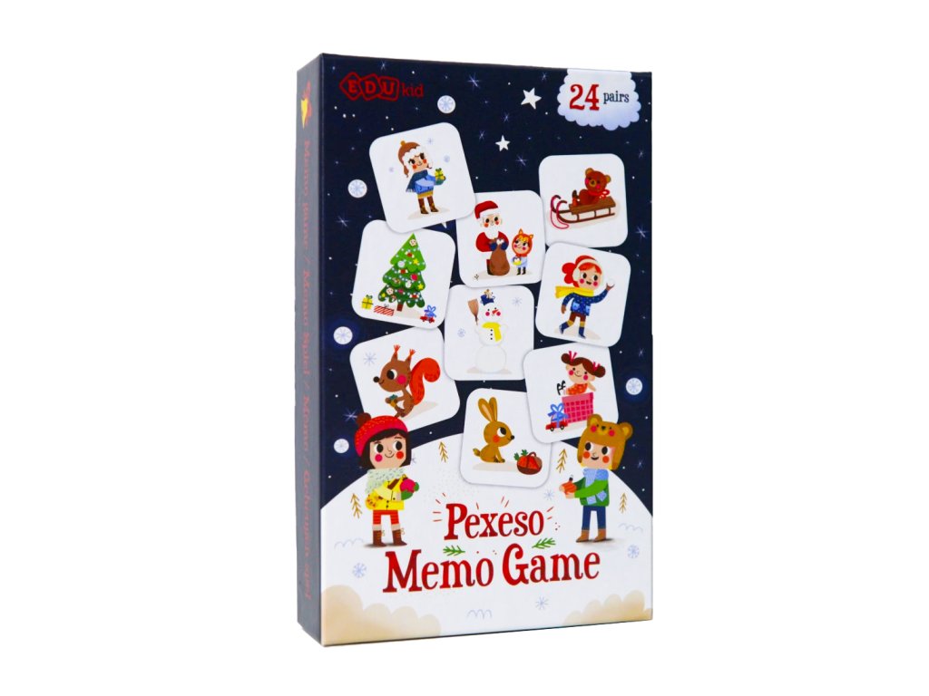 Pexeso Vianoce 24 párov Vianočné pexeso s krásnymi ilustráciami Originálne vianočné pexeso pre deti navodí u vás doma príjemnú vianočnú atmosféru. Balenie obsahuje 48 kartičiek, teda 24 párov pexesa, so zimnými a vianočnými motívmi z vianočného bestselleru Magnetická kniha Vianoce. Hravé ilustrácie vytvorila ilustrátorka Edita Hajdu. Kartičky majú rozmer 4,5 x 4,5 cm, vyrobené z pevného kartónu a majú oblé rohy. Sú tak dostatočne veľké a bezpečné pre malé detské ruky. Navrhnuté na Slovensku, vyrobené v Česku Pexeso Vianoce je vďaka väčšej veľkosti kartičiek a menšiemu počtu párov skvelou prvou spoločenskou hrou pre deti. Deti si počas hrania cvičia pamäť, pozorovacie schopnosti aj základné pravidlá hrania spoločenských hier, ako je striedanie poradia. Menším deťom môžete na začiatok vybrať len niekoľko párov. Vianočné puzzle je ideálny vianočný darček. Skvelé je aj ako prekvapenie od Mikuláša.Dodatočné parametre