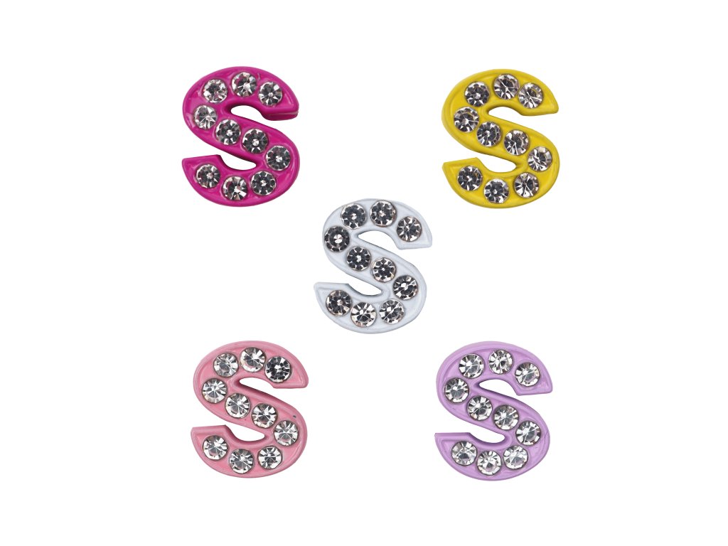 Písmeno S Prívesok na náramok 10 ks Ozdob si náramok svojim menom! Farebný prívesok na náramok s kamienkami písmeno S švédskej značky Nojomojo krásne doplní 8mm náramky rovnakej značky. Farby písmeniek sú vyberané náhodne, buď v bielo, žltej, svetlo fialovej, svetlo ružovej alebo fuchsiovej farbe. Deti si tak vytvoria jedinečný personalizovaný náramok s menom as ďalšími ozdobami. Vyjadrujú tak svoj štýl a môžu ozdoby meniť podľa ľubovôle. Prívesok na náramok z bezpečných materiálov Trblietavý prívesok písmeno S na detský náramok s menom Nojomojo je vyrobený z bezpečných materiálov bez prítomnosti niklu, kadmia či olova. Pre deti je úplne bezpečný. Nojomojo je švédska značka zameriavajúca sa na návrh a produkciu hravých, kreatívnych a nezávadných doplnkov a ďalších vecí pre deti.Balenie 10 ksDodatočné parametre