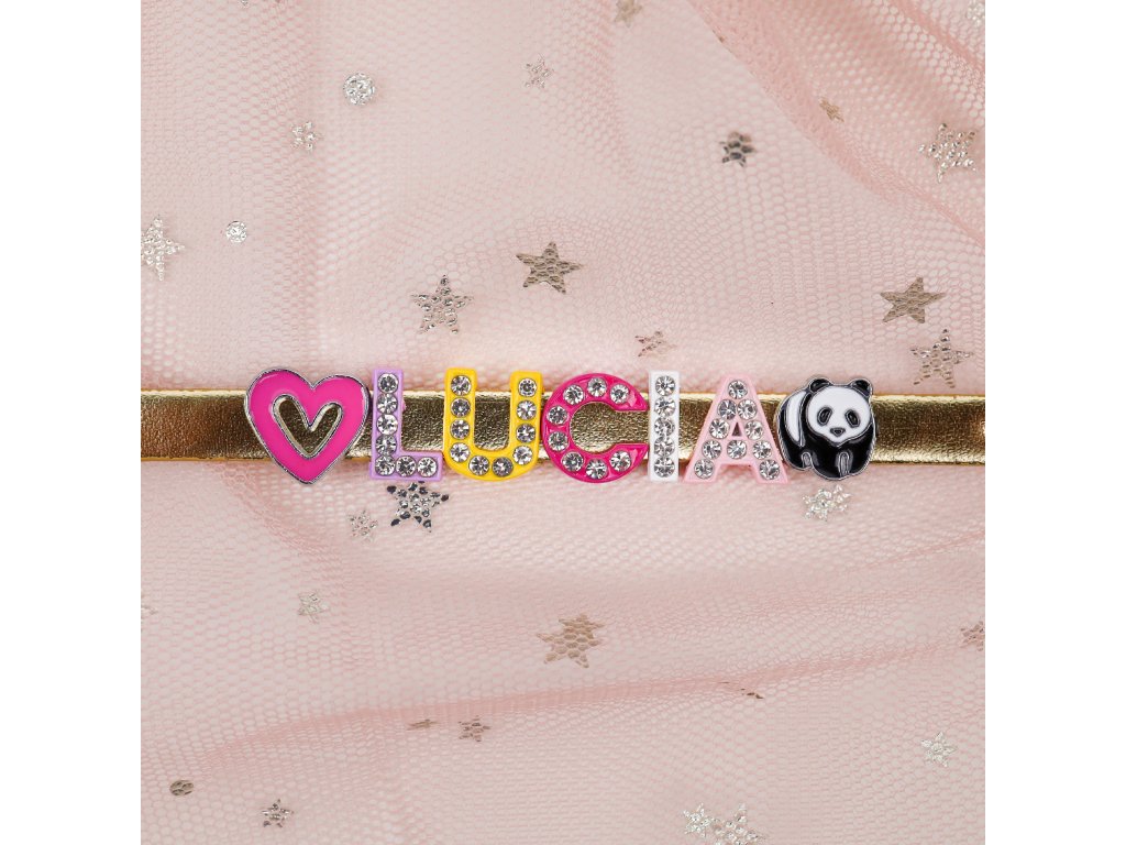 Písmeno U Prívesok na náramok 10 ks Ozdob si náramok svojim menom! Farebný prívesok na náramok s kamienkami písmeno U švédskej značky Nojomojo krásne doplní 8mm náramky rovnakej značky. Farby písmeniek sú vyberané náhodne, buď v bielo, žltej, svetlo fialovej, svetlo ružovej alebo fuchsiovej farbe. Deti si tak vytvoria jedinečný personalizovaný náramok s menom as ďalšími ozdobami. Vyjadrujú tak svoj štýl a môžu ozdoby meniť podľa ľubovôle. Prívesok na náramok z bezpečných materiálov Trblietavý prívesok písmeno U na detský náramok s menom Nojomojo je vyrobený z bezpečných materiálov bez prítomnosti niklu, kadmia či olova. Pre deti je úplne bezpečný. Nojomojo je švédska značka zameriavajúca sa na návrh a produkciu hravých, kreatívnych a nezávadných doplnkov a ďalších vecí pre deti.Balenie 10 ksDodatočné parametre